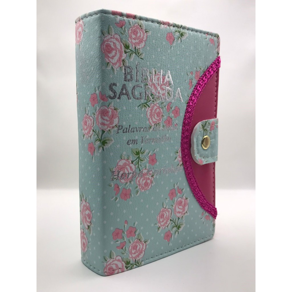 Bíblia Sagrada Tamanho médio 12,5x19 cm Com Harpa palavras de Jesus em vermelho - Botão - Capa Florida Verde