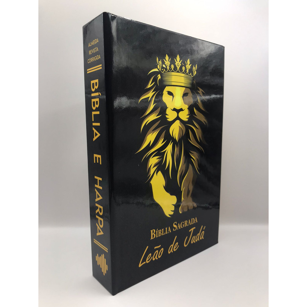 Bíblia Sagrada Tamanho Médio 12,5x19 cm Com Harpa Palavras De Jesus Em Vermelho Capa Dura Leão dourado