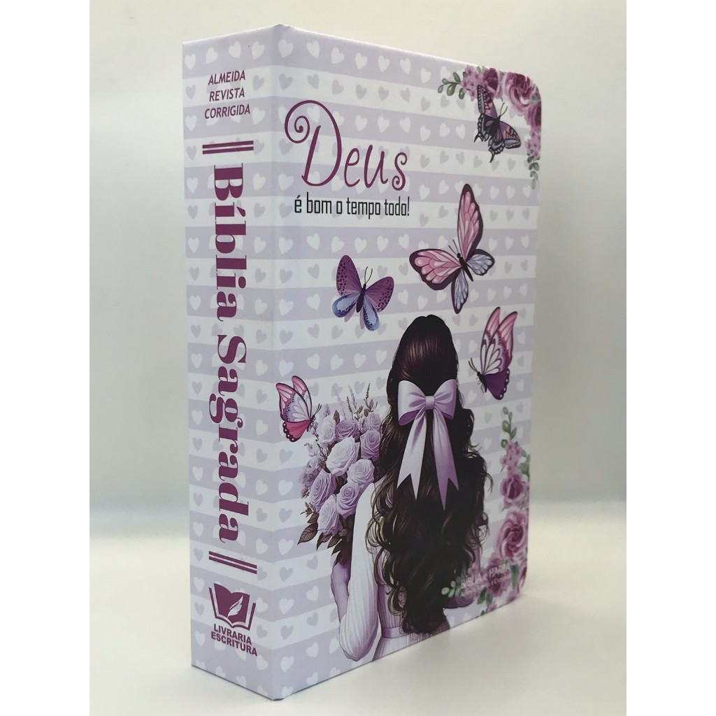 Bíblia Sagrada Tamanho Médio 12,5x19 cm Com Harpa palavras de Jesus em vermelho Rosas Lilás