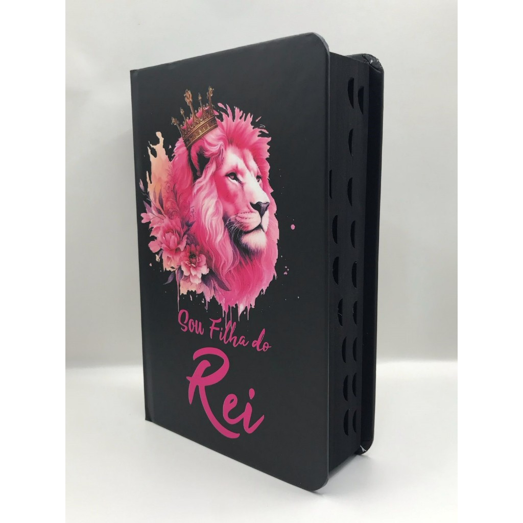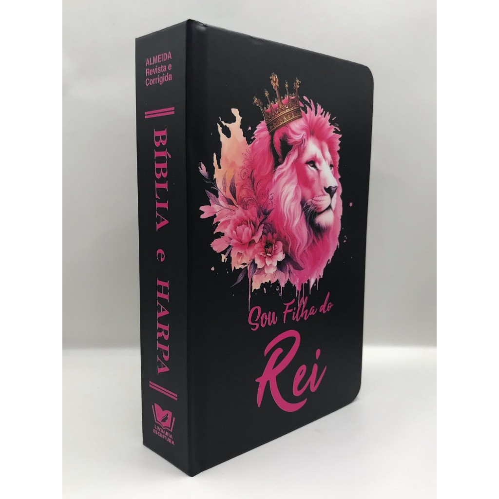 Bíblia Sagrada Tamanho Médio 12,5x19 cm Com Harpa palavras de Jesus em vermelho Leão Sou Filha do Rei