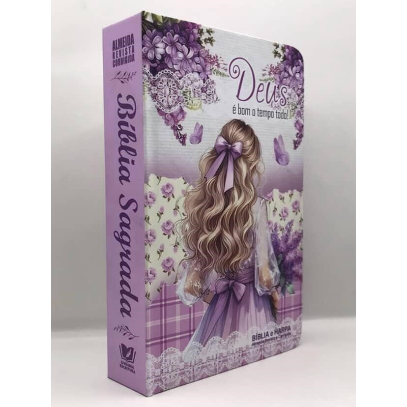 Bíblia Sagrada Tamanho Médio 12,5x19 cm Com Harpa Palavras de Jesus em Vermelho Capa Dura Menina Loira