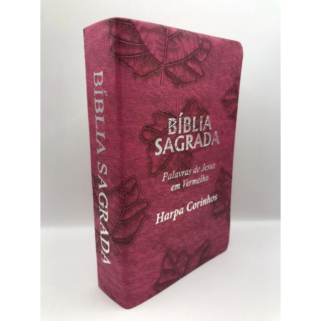 Bíblia tijolinho com harpa e corinhos ; Capa flexível; Edição de promessas,; Possui índice; Com palavras de Jesus em vermelho; Letra pequena; Papel jornal; Tamanho 12,5 X 19,0 cm