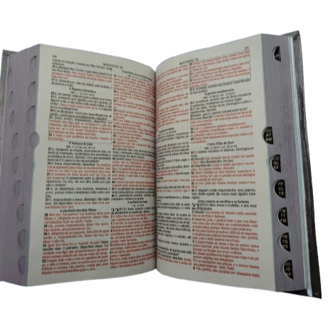 Bíblia Sagrada Tamanho Médio Capa Dura jovem Com Harpa índice lateral e Palavras de Jesus em Vermelho Esta Bíblia tem um acabamento diferenciado, com capa dura especial em alto brilho, * Capa Especial em alto Brilho * Possui LETRAS MÉDIAS * As Palavras Ditas por Jesus são destacadas em Vermelho * Harpa * Índice Lateral * Edição Promessas ( as promessas destacadas em negrito ) * João Ferreira de Almeida Revista e corrigida; * Capa Dura * Tamanho Grande: 21cm Altura x 14cm Largura * Bíblia ARC – A Versão Clássica e Tradicional A Bíblia Almeida Revista e Corrigida (ARC) é uma das traduções mais tradicionais e fiéis das Escrituras Sagradas em português. Baseada nos textos originais hebraicos e gregos, essa versão preserva a linguagem solene e reverente que tem abençoado gerações de cristãos. 📖 Características da Bíblia ARC: ✅ Linguagem clássica e fiel aos textos originais ✅ Amplamente usada em igrejas evangélicas no Brasil ✅ Ideal para leitura, estudo e pregação Perfeita para quem busca uma Bíblia de fácil compreensão, mas sem perder a profundidade e a tradição. Seja para uso pessoal, presentear ou evangelizar, a Bíblia ARC é a escolha certa! 🛒 Garanta já a sua! Bíblia Sagrada Tamanho Médio Capa Dura jovem Com Harpa índice lateral e Palavras de Jesus em Vermelho As editoras classificam esta Bíblia como sendo de 'letra média'. Para você entender melhor, o tamanho das letras costuma ser classificado, em ordem crescente, da seguinte forma: letra pequena, letra média, letrar, letra gigante, letra hiper gigante, letra hiper gigante Plus, letra extra gigante e letra jumbo. Ou seja, a letra desta Bíblia é grande e proporciona uma leitura confortável, embora não seja a maior disponível (que seriam a letra extra gigante e a letra jumbo).