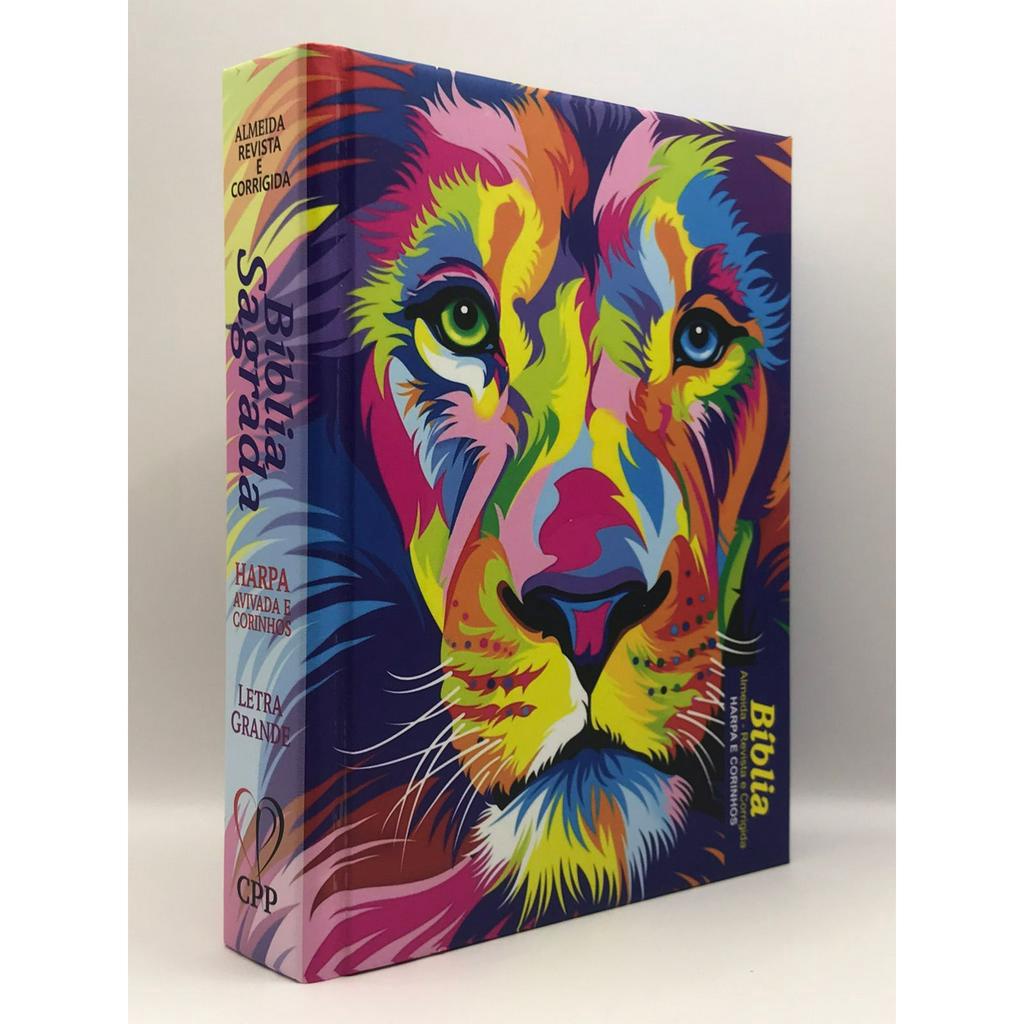 Bíblia Sagrada Tamanho Médio Com Harpa Revista e Corrigida Capa Dura Leão Aquarela