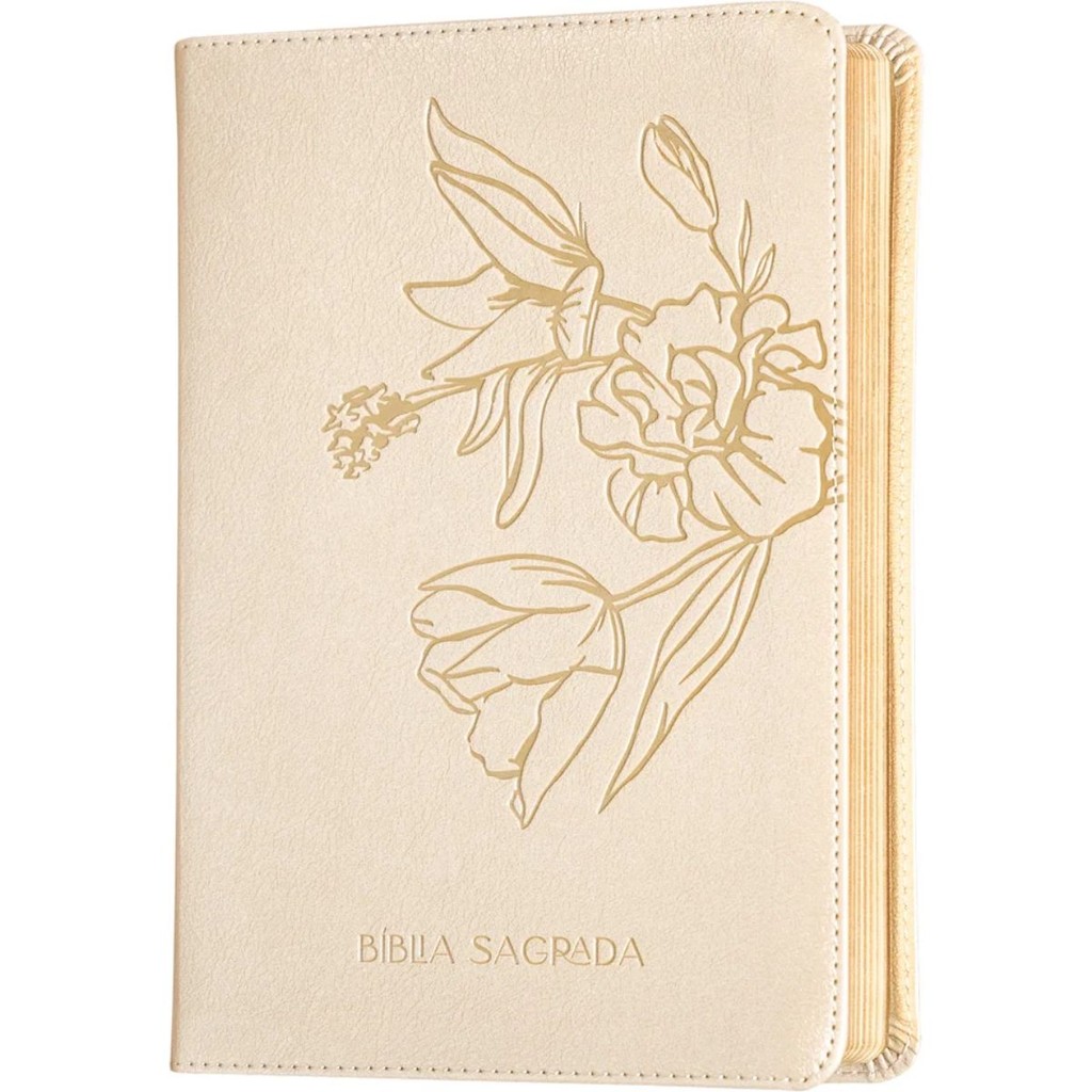 Bíblia Sagrada The Purpose Book | A21 | Capa Couro Soft Bege Flores A The Purpose Book: Bíblia Sagrada é a versão compacta da Bíblia da Purpose, ideal para a rotina da igreja. Leve, prática e com bom manuseio, cabe facilmente em bolsas ou ecobags. Com tradução Almeida Século 21 em uma coluna de texto, oferece três planos de leitura (personalizado, 365 dias e cronológico) e um sistema exclusivo para marcar os versículos já lidos. Apresenta aberturas ilustradas com letterings que destacam Cristo em cada livro. Sem espaço para anotações, foca na leitura e contemplação da Palavra. Disponível em capas de couro, une beleza, resistência e praticidade. Principais características: - Formato leve e compacto, ideal para transporte diário; - Tradução Almeida Século 21 em uma coluna de texto; - Três planos de leitura: personalizado, 365 dias e cronológico; - Sistema exclusivo de marcação: check de leitura de versículos aglutinados; - Aberturas ilustradas com letterings que destacam Cristo em cada livro; - Sem espaço para anotações, focada na leitura e contemplação; - Novas capas em couro: elegantes, resistentes e duráveis. Editora: Thomas Nelson Brasil Acabamento: Capa em couro soft PU Dimensões: 14,5 cm larg. x 22,5 cm alt. Número de páginas: 1408