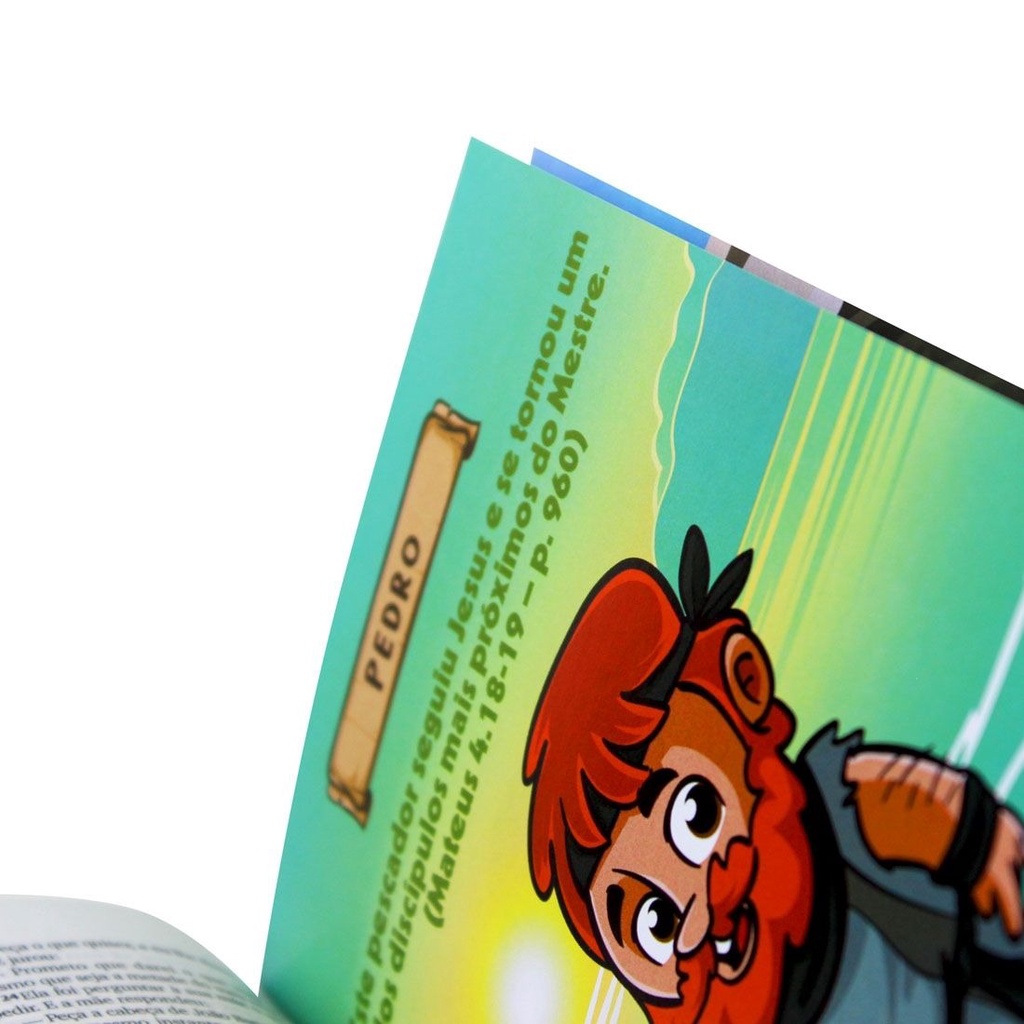 Depois do sucesso do Álbum de Figurinhas dos Personagens Bíblicos, a SBB apresenta a Bíblia Sagrada Turma da Bíblia. Na Nova Tradução na Linguagem de Hoje, a publicação vem com capa dura e traz o auxílio Fonte de Bênçãos, um índice de passagens bíblicas que aborda quatro aspectos da vida cristã: relacionamento com Deus, relacionamento com as pessoas, relacionamento com a Palavra de Deus e bênçãos da vida cristã. Os versículos recebem destaque ao longo do texto bíblico. A edição vem, ainda, com 80 páginas coloridas com os personagens da Turma da Bíblia e texto em destaque com referência bíblica, além de uma cartela de figurinhas autoadesivas, para a criança levar a Palavra de Deus sempre com ela. Tradução: Nova Tradução na Linguagem de Hoje Idioma: Português Tamanho da Letra: Maior Capa: Ilustrada Acabamento: Capa dura Medida: 11,5 X 16,5 cm Formato: Pequeno Páginas: 1.312 + 80 páginas coloridas páginas