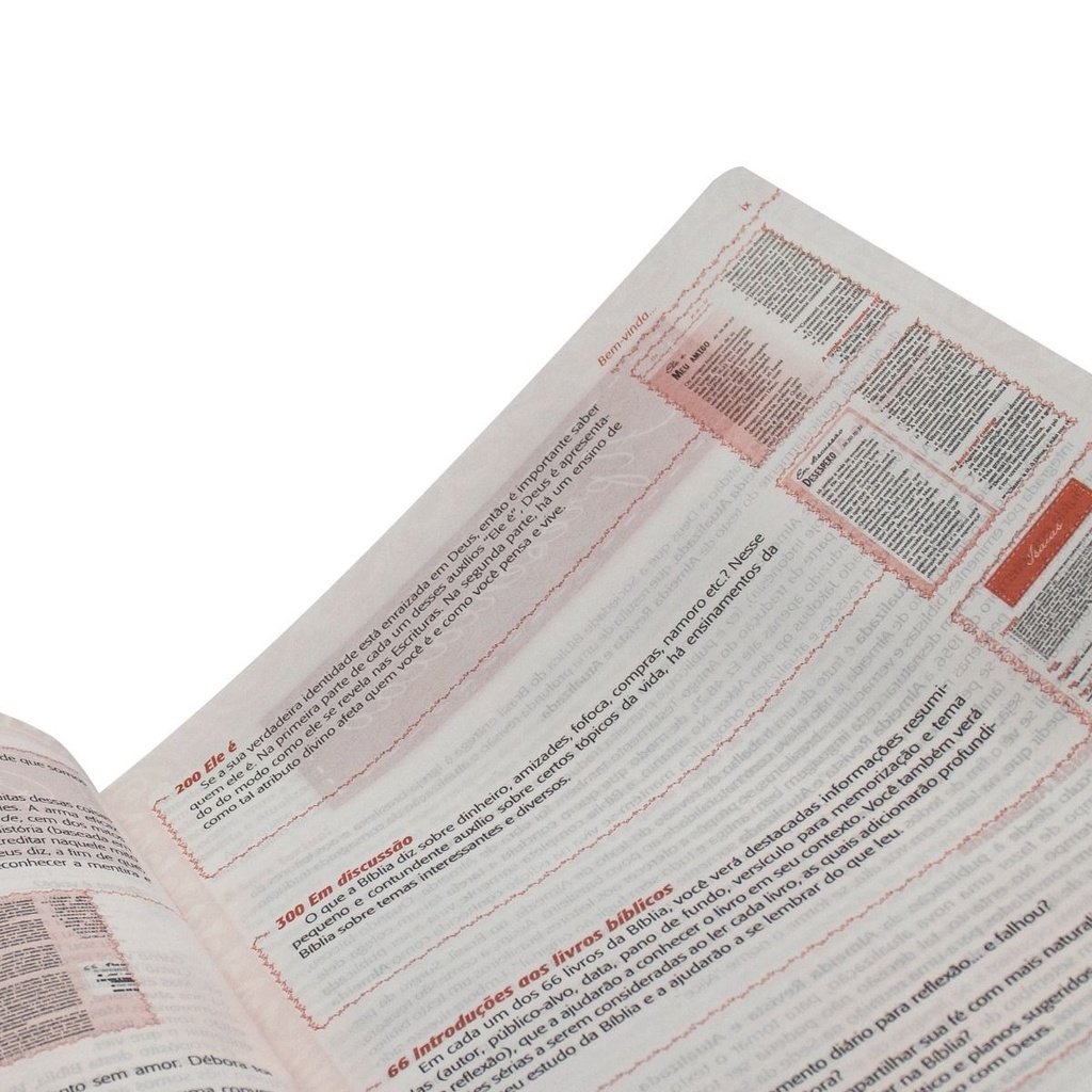 A Bíblia Sagrada Verdadeira Identidade foi escrita para mulheres de todas as idades e envolve situações enfrentadas ao longo da vida, tais como trabalho, carreira, namoro, casamento, filhos, amizades, mudanças etc. Tradução: Nova Almeida Atualizada Idioma: Português Tamanho da Letra: Normal Capa: Impressa Acabamento: Couro sintético Medida: 17,0 x 23,5 cm Formato: Grande Páginas: 1.989 páginas Índice: Não Indicado para: Mulheres ISBN: 7899938423653 Código: NA085BVI Peso: 1.110000 Kg Recurso Artigos Conteúdo da Bíblia Índice dos materiais de estudo Plano de leitura da Bíblia Referências bíblicas e variantes textuais Recursos Adicionais • Mitos: Cem dos mitos mais comuns são apresentados. Para cada “mito”, há uma história (baseada em testemunhos reais da vida de mulheres) sobre como o fato de acreditar naquele mito afetou a vida da mulher.• Pergunte-me: Reúne 30 perfis de mulheres das Escrituras, apresentados em formato de entrevistas.• Conversas: Esse auxílio aborda 200 questões profundas para refletir, tanto individualmente, quanto em grupo.• Ele é: Na primeira parte de cada um desses auxílios, Deus é apresentado do modo como ele se revela nas Escrituras. Na segunda parte, há um ensinamento de como tal atributo divino afeta quem a leitora é e como ela pensa e vive.• Em discussão: Nesse pequeno e contundente auxílio sobre certos tópicos da vida, há ensinamentos da Bíblia sobre 200 temas diversos.• Introdução aos livros bíblicos: Em cada um dos 66 livros da Bíblia, a leitora verá destacadas informações resumidas (autor, público-alvo, data, pano de fundo, versículo para memorização e tema para reflexão), que a ajudarão a conhecer o livro em seu contexto.• Artigos: Ao final da Bíblia, há um índice temático de artigos e planos sugeridos de leitura, para ajudar a leitora a aproveitar ao máximo o seu tempo com Deus.