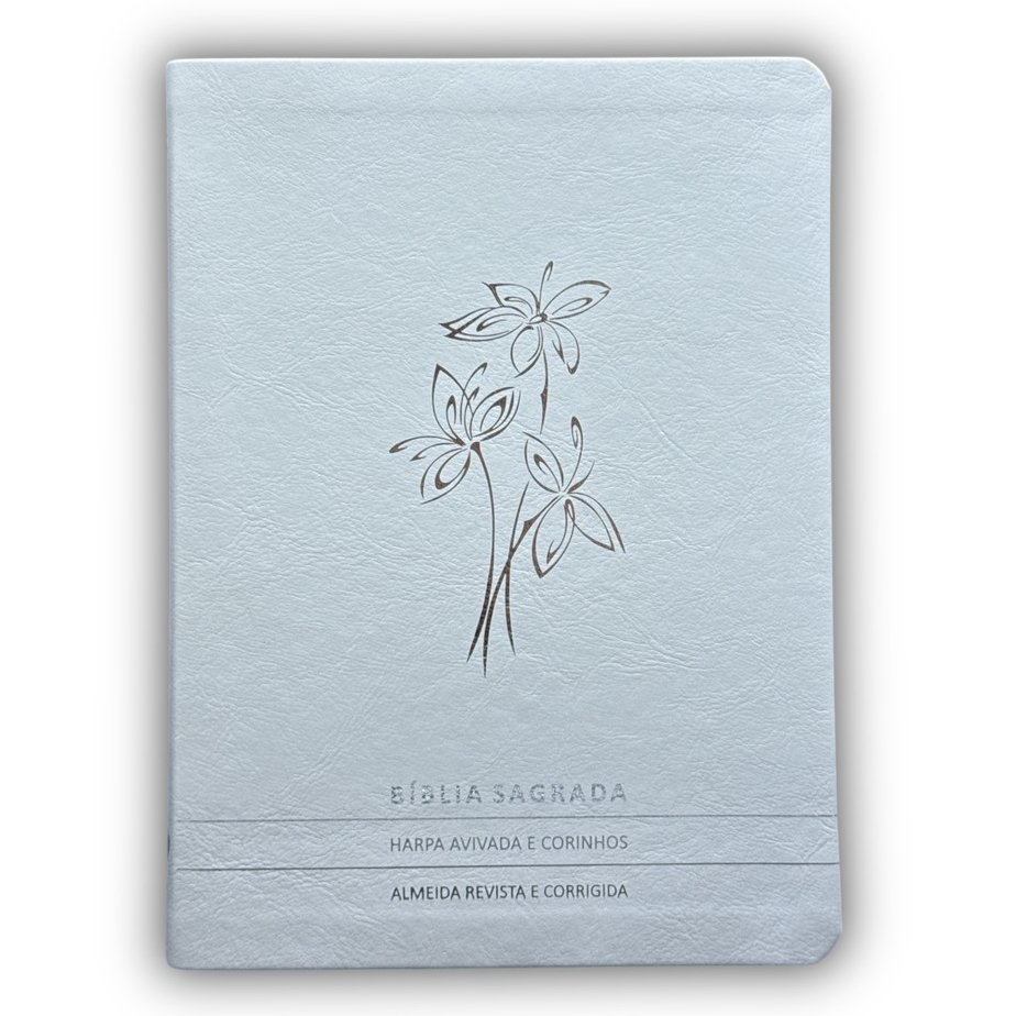 BÍBLIA SLIM PREMIUM LUXO ARC C/HARPA FULL COLOR - RAMO DE FLORES BRANCO