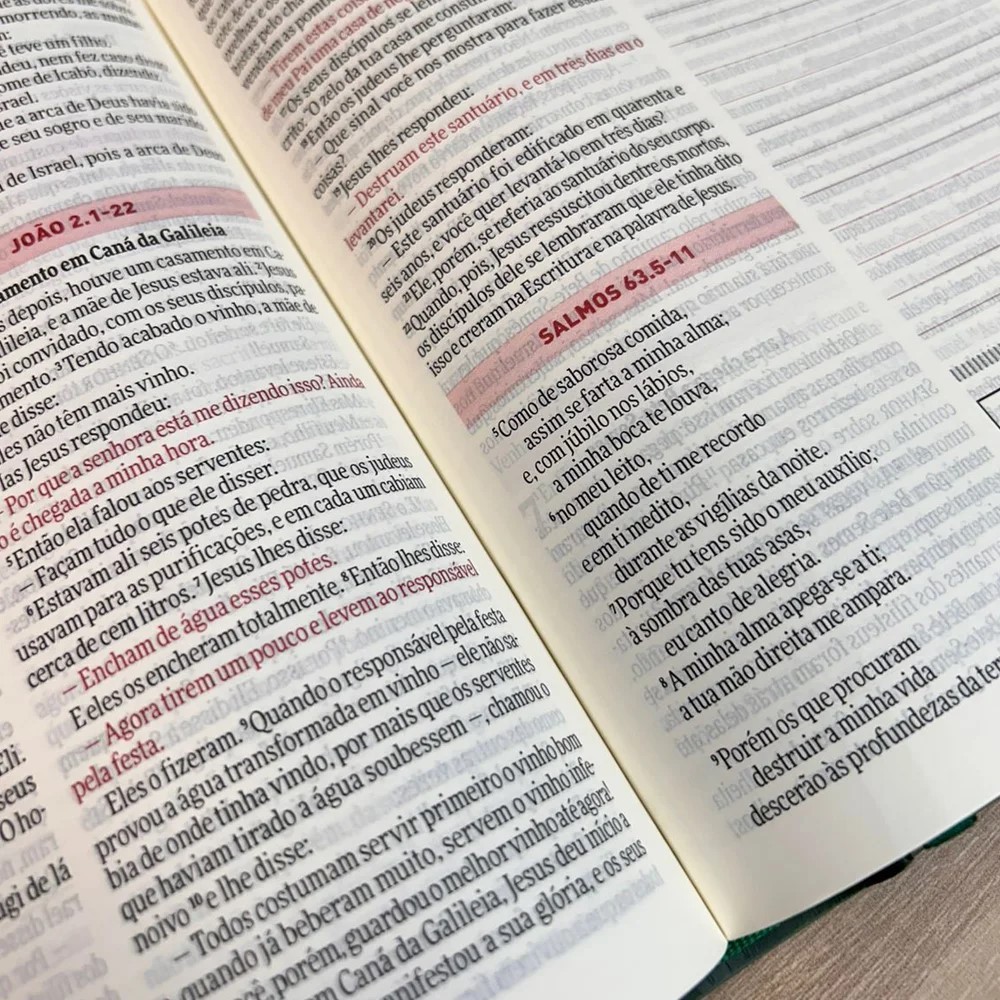 A Bíblia Todo Dia é perfeita para quem busca um estudo mais profundo, criativo e pessoal das Escrituras. Com leituras diárias do Antigo Testamento, Novo Testamento e Salmos, ela traz espaço para anotações, reflexões ou ilustrações, permitindo que você registre seu caminhar com Deus. Em letra normal, com capa dura em aquarela e na Versão Amplificada, oferece mais clareza e significado aos textos bíblicos. Título: Bíblia Todo Dia | NAA | Espaço Para Anotações | Capa Dura Rosê Linguagem: Nova Almeida Atualizada Capa: Rosê Acabamento: Capa Dura Borda: Dourada Índice: Não Harpa: Não Palavras de Jesus em destaque: Não Letra: Normal Fitilho: Sim Páginas: 1305 Dimensões: 14,5 x 22 x 3 cm Peso: 0.735 kg ISBN: 9786555846300 Editora: Editora Vida