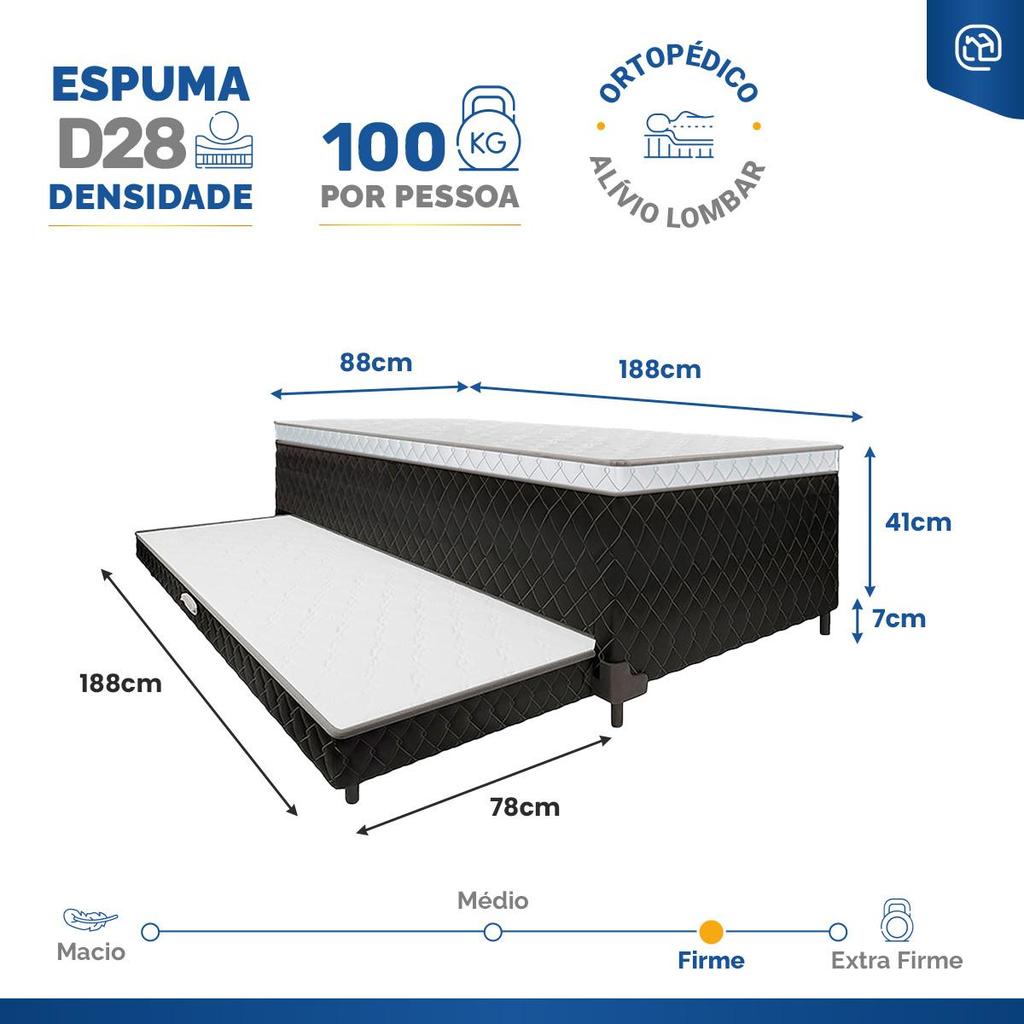 Bicama Box Conjugada de Espuma D28 e Auxiliar de Espuma Veronna Solteiro 88cm