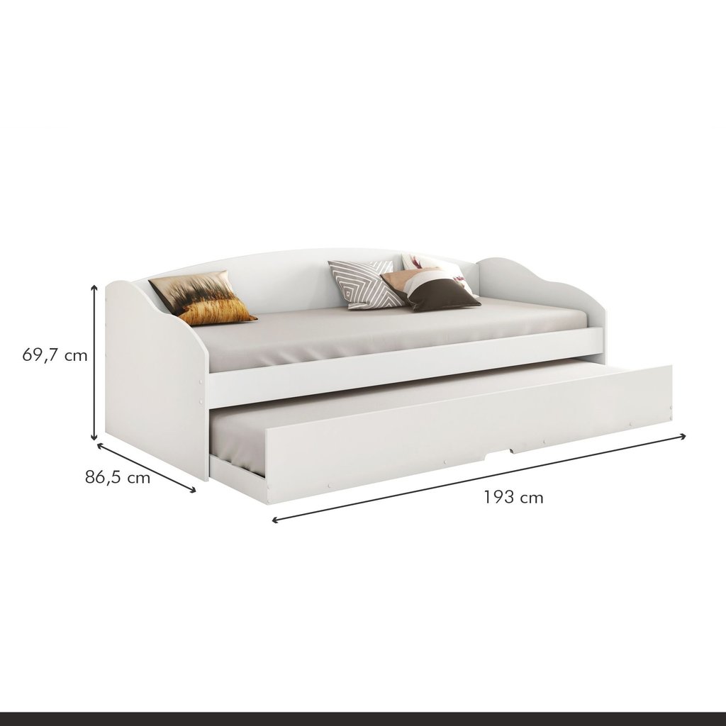 A Bicama Solteiro Funny III da Conquista Móveis é a escolha perfeita para quem busca praticidade e versatilidade em um único móvel. Fabricada em MDF/MDP com um acabamento impecável em pintura UV, esta bicama oferece durabilidade e resistência superiores, garantindo que você desfrute de seu conforto por muitos anos. Além de ser uma opção funcional como cama de solteiro, a Bicama Funny III também pode ser utilizada como um sofá elegante, proporcionando flexibilidade para otimizar o espaço em seu ambiente. Seus rodízios na cama auxiliar facilitam a movimentação e o uso prático do móvel, tornando a sua experiência ainda mais conveniente. Com um design moderno e sofisticado, o Sofá Cama Funny III é a escolha ideal para complementar a decoração de sua casa com charme e bom gosto. Seja para receber visitas inesperadas, criar um ambiente aconchegante na sala de estar ou até mesmo para otimizar o espaço em quartos compactos, esta bicama é a solução perfeita. Invista em um móvel versátil e de alta qualidade que irá atender às suas necessidades diárias com estilo. A Bicama Solteiro Funny III da Conquista Móveis é a combinação perfeita de funcionalidade, durabilidade e design elegante, tornando-a uma excelente opção para quem busca praticidade e conforto em um só produto. Adquira já a sua e transforme seu lar com um toque de sofisticação! Estilo: Moderno Peso (kg): 41.07 Garantia: 03 Meses Altura (cm): 69.7 Acabamento: Pintura UV Largura (cm): 193 Possui Baú: Não Possui Pés: Não Tipo de Cama: Bicama Possui Portas: Não Comprimento (cm): 86.5 Possui Gavetas: Não Suporta Até (kg): 80 Tamanho da Cama: Solteiro Tipo de Estrado: Fixo Escala de Brilho: Semi-Brilho Acompanha Colchão: Não Origem do Produto: Nacional Ambiente Principal: Quarto Material da Gaveta: MDF Material Principal: MDF/MDP Possui Prateleiras: Não Tamanho do Colchão: Solteiro Material do Estrado: pinus e eucalipto Acabamento da Gaveta: Pintura Acompanha Cama Auxiliar: Sim Cama Auxiliar com Rodízio: Sim Escala de Brilho da Gaveta: Brilhante Altura do Estrado até o Chão: 33 Cama Auxiliar Suporta Até (kg): 100 Cama Auxiliar Acompanha Colchão: Não Marca: Conquista Móveis Cor: Branco Cor do Produto: Branco Itens Inclusos: 1 Bicama Funny e Manual de Montagem. Cor Predominante: Branco Linha ou Coleção: Funny Tamanho do Produto: Solteiro Tamanho do Colchão Indicado (L x C): 0,78cm x 1,88cm x 14cm Tamanho do Colchão Indicado Cama Auxiliar (L x C): 78cm x 188cm x 14c