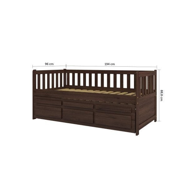 Bicama Solteiro Reta 3 Gavetas Castanho