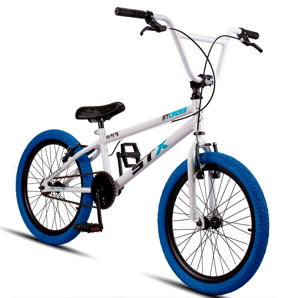 *** PNEUS COLORIDO EDIÇÃO LIMITADA*** A bicicleta aro 20 BMX STX , além de sua qualidade e resistência, também é uma excelente opção para iniciantes no mundo do BMX. Com aros Aero , a bicicleta oferece uma ótima estabilidade e controle, o que é essencial para quem está aprendendo a praticar manobras. Além disso, seu quadro em aço carbono e freios V-Brake proporcionam segurança e confiabilidade, o que é fundamental para os ciclistas iniciantes. Com essas características, a BMX STX é uma escolha acertada para quem deseja iniciar na prática do BMX com uma bicicleta de qualidade e segura. Quadro em Aço Carbono Guidão em Aço Carbono BMX Garfo em Aço Carbono Tipo de Freio: V-Brake Tipo de Engrenagem: catraca 16D Cubos em Aço 36 Furos Pneus: Aro 20 COLORIDO Aro 20 Aero Alumíno 36 Furos Pedal Nylon Canote 22.2mm Aço Carbono Selim P.U. BMX Pedivela: Pedivela Monobloco 36D Movimento Central: 50mm Importante: Fotos ilustrativas / a cor do tom real do produto pode ser ligeiramente diferente devido a diferença de telas. Bicicleta pré-montada, aconselhamos que a montagem e regulagem dos freios seja realizada por um profissional. Recomendações de Uso: Iniciantes no esporte Garantia do Fabricante: 3 Meses