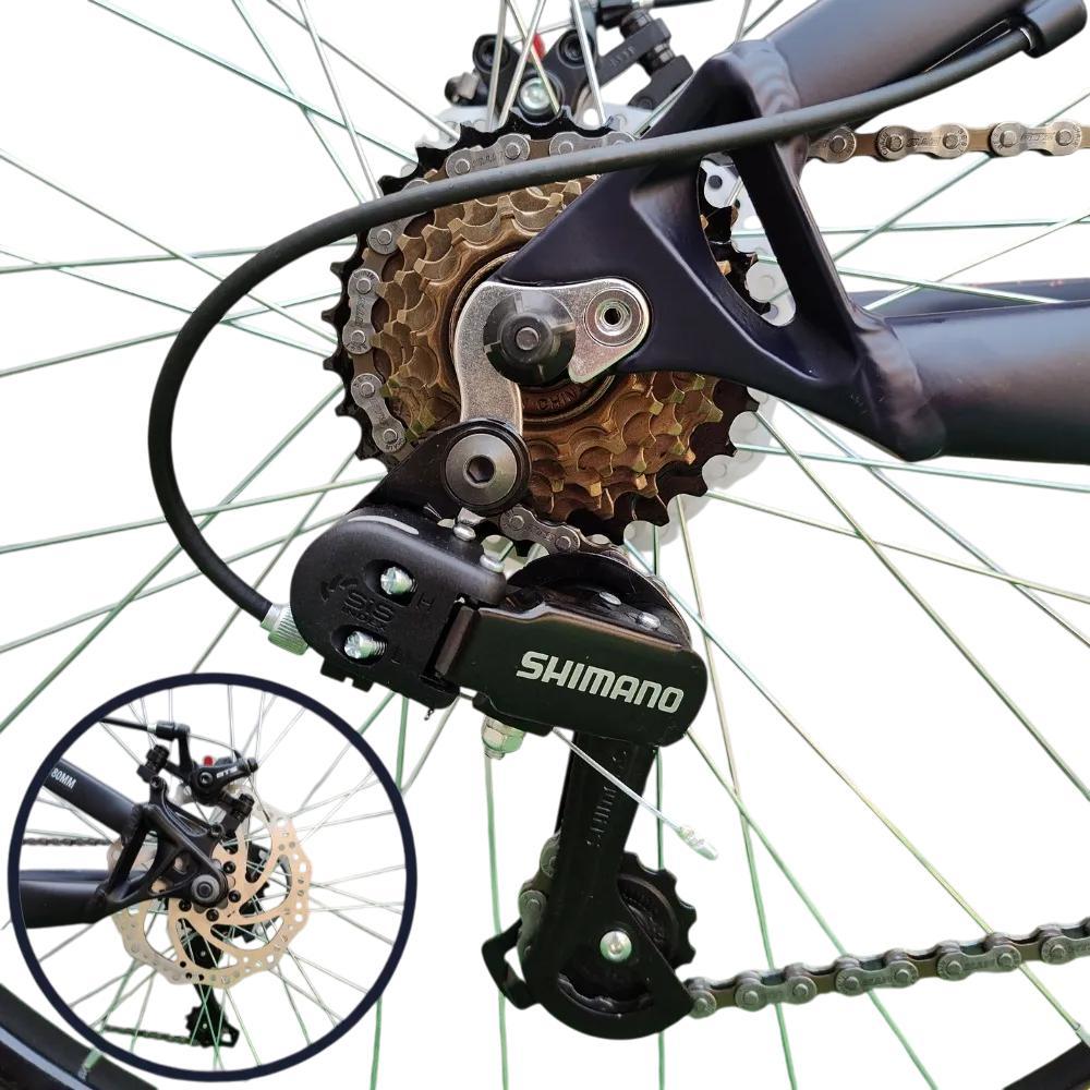 A Bicicleta do Grau Vikingx Tuff x25 Aro 26 é a escolha ideal para quem busca resistência, leveza e desempenho em trilhas, mountain bike ou lazer. Com estrutura totalmente em alumínio 6061, ela oferece alta durabilidade, baixo peso e maior agilidade para encarar qualquer terreno com segurança. Destaques e principais características Quadro em alumínio 6061: Leve, resistente e com tamanho 26", perfeito para trilhas e uso urbano. Suspensão de 80mm: Curso sem trava, absorve impactos e proporciona mais conforto em trilhas e terrenos irregulares. Caixa de direção semi integrada: Estabilidade e dirigibilidade aprimoradas. Guidão: Opção reto ou curvo, ambos em alumínio 6061, para maior controle e ergonomia. Mesa: 80mm em alumínio 6061, leve e resistente. Componentes Shimano: Troca de marcha confiável com câmbio dianteiro Shimano Tourney TZ 500 e traseiro Shimano TZ 31, de alta durabilidade. Freios a disco mecânico: De 160mm, garantindo frenagem segura e eficiente. Pneus MTB 26" Cravo: Para maior tração e estabilidade em trilhas e terrenos irregulares. Roda livre: 7 velocidades, com câmbio indexado de alta precisão. Aros Race em alumínio de parede dupla: Leves, resistentes e perfeitos para mountain bike. Conforto e segurança: Selim PU com trilho de regulagem, pedal plataforma em nylon, corrente de 7v, canote de 27.2mm em alumínio. - Observações Importantes: As imagens são ilustrativas e podem apresentar variações de cor e componentes conforme o lote, mantendo sempre qualidade igual ou superior - Envio e Montagem: A bicicleta é enviada desmontada. Por questões de transporte, algumas partes são desmontadas para segurança na embalagem É fundamental que a montagem e regulagem final sejam realizadas por oficina especializada com mecânico qualificado, conforme exigido para validação da garantia - Garantia: Garantia válida exclusivamente para o primeiro proprietário Cobre apenas defeitos de fabricação A garantia não cobre montagem inadequada, mau uso ou itens de desgaste natural, como: Pneus, câmaras, cabos e freios Corrente, pedivela, engrenagens e cassete Pintura e centragem de aros - Por que escolher a Vikingx 26 Tuff x25? Bicicleta com excelente custo-benefício para uso urbano e trilhas leves Componentes selecionados para durabilidade e desempenho Envio rápido, seguro e atendimento especializado - Adquira a sua Bicicleta do Grau Tuff x25 Aro 26 Freeride, a melhor escolha para quem exige qualidade, confiabilidade e performance!