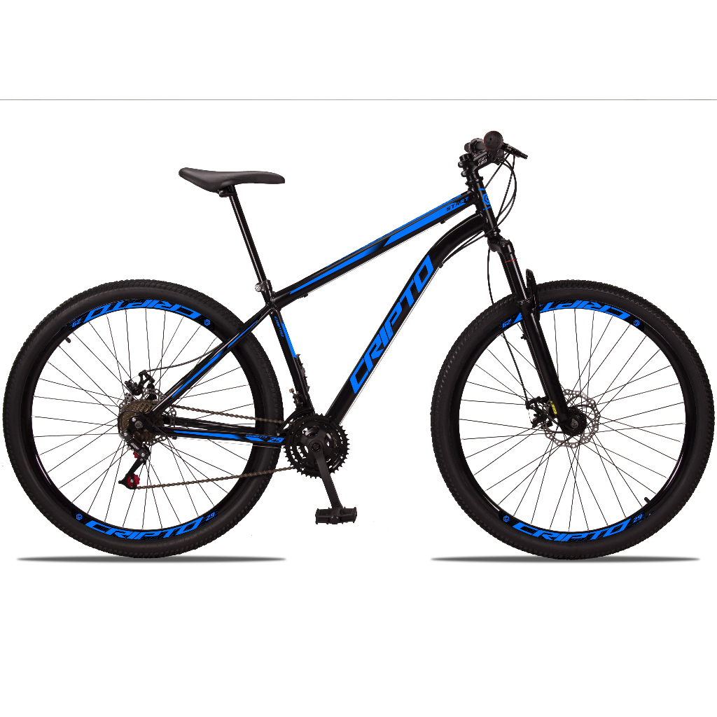 Bicicleta Aro 29 Cripto MTB com Suspensão 80mm — Desempenho, Versatilidade e Confiabilidade para Trilhas moderadas e Uso Diário ATENÇÃO: Fomos premiados como Melhor Vendedor da Categoria Sports , o que garante a você confiança, atendimento de excelência e um produto com ótimo custo-benefício. Compre de quem entrega qualidade reconhecida! A escolha ideal para quem busca aventura e performance com excelente custo beneficio A Bicicleta Cripto MTB aro 29 foi desenvolvida para quem quer encarar trilhas, percorrer terrenos mistos ou utilizar a bike no dia a dia urbano com segurança e conforto. Equipada com suspensão dianteira de 80mm, freios a disco mecânicos e uma transmissão de 21 marchas com componentes importados, ela combina desempenho, resistência e versatilidade em um único modelo. Principais Características Técnicas Quadro Aro 29 em aço carbono — estrutura robusta com geometria ideal para MTB e pedal urbano Suspensão dianteira Cursor 80mm — absorve impactos em terrenos irregulares, aumentando o conforto Caixa de direção semi integrada — mais estabilidade e precisão na direção Guidão em alumínio 6061 — reto ou curvo, com pegada confortável e controle firme Mesa 80mm em alumínio — leve, resistente e com ótima ergonomia Manoplas em borracha flexível — aderência e conforto ao segurar Trocadores GripShift 3x7 importados — mudanças suaves e confiáveis Freios a disco mecânicos de 160mm — frenagem segura em qualquer condição climática Câmbios dianteiro e traseiro indexados — trocas de marchas precisas e duráveis Pedivela em aço carbono 24/34/42D — versatilidade para diferentes tipos de percurso Corrente indexada e roda livre de 7 velocidades — desempenho e compatibilidade Aros: Race de parede dupla – mais resistência para trilhas e asfalto Pneus Cravo MTB aro 29 — tração superior para trilhas, terra e asfalto Selim em PU com trilho de regulagem + canote em aço 22.2mm — conforto mesmo em pedais longos Observações Importantes: As fotos do anúncio mostram o quadro tamanho 17 A geometria do quadro pode variar conforme o tamanho, com tubo superior mais reto no quadro 21 As imagens são ilustrativas e podem apresentar variações de cores e componentes, sempre mantendo qualidade igual ou superior Peças podem variar de acordo com a disponibilidade em estoque - Envio e Montagem: A bicicleta é enviada pré-montada e levemente lubrificada Por motivo de transporte seguro, algumas peças vêm desmontadas A montagem e a regulagem devem ser feitas em oficina especializada por mecânico qualificado A garantia só será válida se a montagem for realizada conforme essas instruções - Garantia: Válida apenas para o primeiro proprietário Cobre exclusivamente defeitos de fabricação Não cobre defeitos causados por montagem inadequada ou mau uso Itens de desgaste natural não são cobertos, como: Pneus e câmaras Cabos e freios Pintura Peças da transmissão (corrente, pedivela, cassete) Centragem dos aros Por que escolher a Cripto MTB 29”? -Produto confiável de uma marca com reconhecimento nacional -Peças importadas de alta durabilidade -Versátil: ideal para trilhas, passeios, deslocamentos urbanos e aventuras -Segurança garantida com freios a disco e geometria estável -Design moderno e ergonômico -Excelente custo-benefício, com suporte de um vendedor premiado -Envio rápido e seguro para todo o Brasil -Atendimento especializado antes e depois da compra