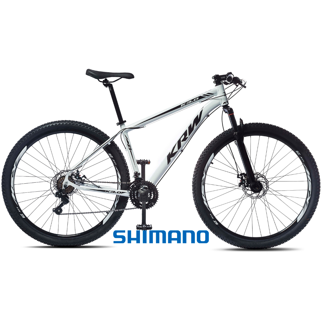 Bicicleta aro 29 Alumínio KRW Shimano 24 Velocidades, Freio Disco Hidráulico, Suspensão dianteira S41