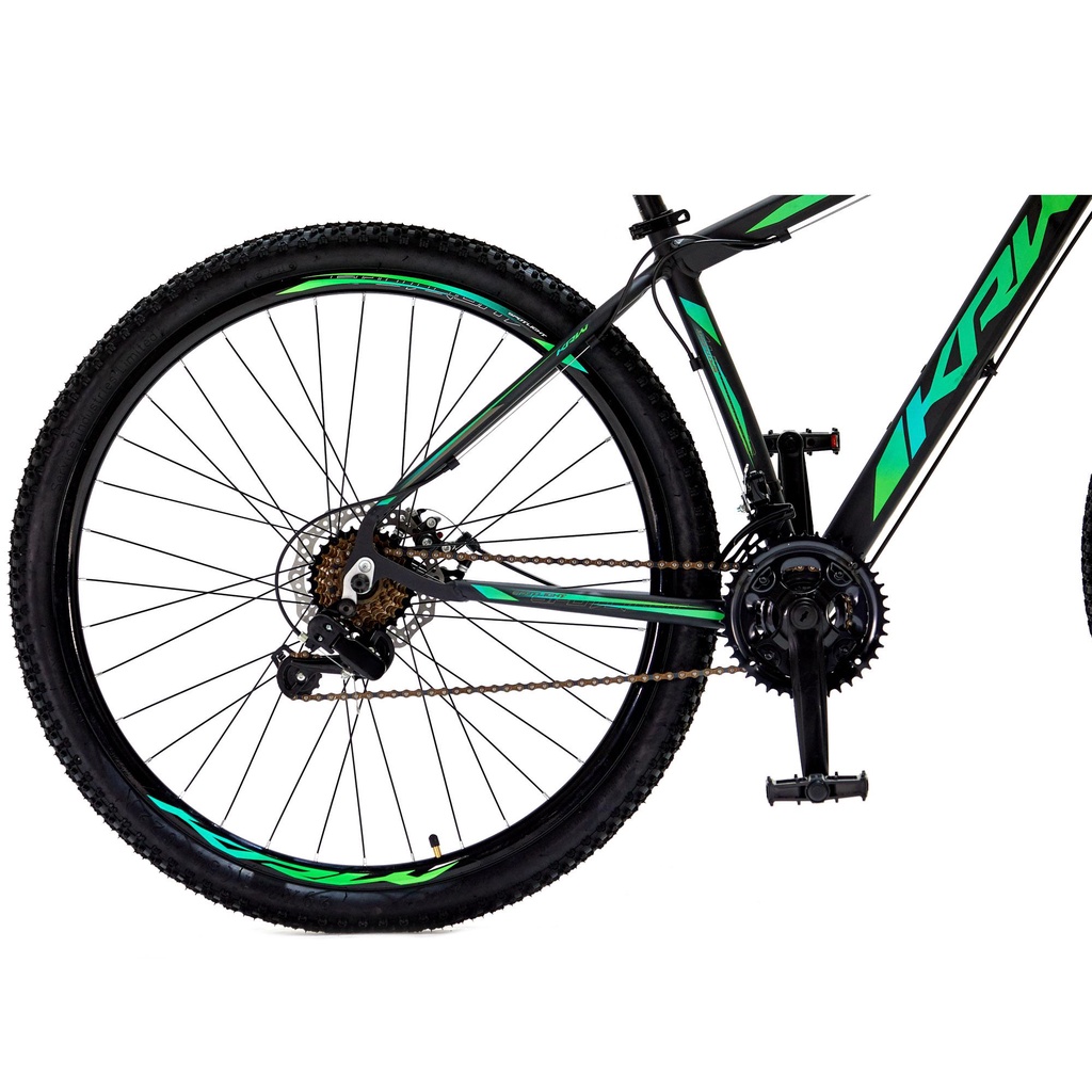 A KRW SX25 é a bicicleta perfeita para quem busca momentos de lazer e aventuras leves em trilhas. Desenvolvida com quadro em alumínio 6061, combina segurança e leveza para um pedal mais ágil e confortável. Seu sistema de freio a disco garante maior segurança nas frenagens, mesmo em terrenos irregulares, enquanto a variedade de cores permite que você escolha um estilo que combina com a sua personalidade. O grande destaque fica por conta do câmbio Shimano TZ, reconhecido mundialmente pela confiabilidade e precisão nas trocas de marcha. Ideal para quem busca um pedal suave e sem trancos, ele oferece desempenho consistente e baixa manutenção, perfeito para iniciantes e ciclistas recreativos. Seja para explorar novos caminhos ou aproveitar um passeio tranquilo, a Bicicleta Aro 29 KRW SX25 é sua parceira para pedalar com estilo e confiança. Composição: Quadro: Alumínio 6061 Abraçadeira de selim: Alumínio, 31,8 mm Alavancas de câmbio: EZ-Fire, 7 velocidades Aros: Aero 29", parede dupla, 36 furos Caixa de direção: Semi-integrado Câmbio dianteiro: Shimano TZ Câmbio traseiro: Shimano TZ Pedivela: Aço, coroa tripla, revestido Canote de selim: 27,2 mm Corrente: Index, 7 velocidades Cubo: Com blocagem Espaçador: Alumínio, 10 mm Garfo: Suspensão mecânica Guidão: 31,8 mm, reto Kit cabos: Com conduíte e teflon Mesa: Alumínio, 31,8 mm Movimento central: Rolamentado, 122 mm Pedal: Nylon preto Freio: A disco, rotor 160 mm Pneu: 29", cravos Raios: 285 x 2,0 mm, aço preto Roda livre: 7 velocidades, index Selim: MTB Peso máximo indicado: 100 KG OBS: IMAGEM MERAMENTE ILUSTRATIVA, BIKE VAI CONFORME DESCRIÇÃO Recomendação de Tamanhos: Altura do ciclista: 1,55 até 1,65m – Tamanho de quadro 15,5 Altura do ciclista: 1,65 até 1,75m – Tamanho de quadro 17 Altura do ciclista: 1,75 até 1,82m – Tamanho de quadro 19 Altura do ciclista: 1,82 até 1,90m ou mais – Tamanho de quadro 21 Montagem: A bicicleta é montada, porém, para acomodação na embalagem e transporte, algumas peças são enviadas desmontadas. A montagem é de responsabilidade do cliente e é necessário efetuar regulagem de câmbio ao receber o produto. Garantia: 1 ano para o quadro e 3 meses para as peças para mais informações, consulte o certificado de garantia do produto. NÃO COBRE DEFEITOS POR MAU USO OU PELA MONTAGEM INADEQUADA.