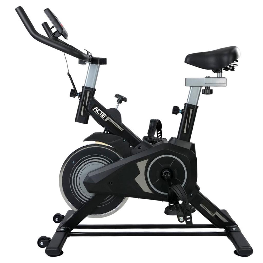 Bicicleta de Spinning com Correia e Painel Multifuncional - Acte Sports: performance e conforto em cada pedalada no conforto da sua casa Desempenho profissional em casa. A Bicicleta de Spinning ACTE BSP4 foi desenvolvida para proporcionar treinos cardiovasculares intensos com a praticidade do ambiente doméstico. Com estrutura robusta e design compacto, é ideal para quem busca performance, resistência e conforto em cada pedalada. Indicada para iniciantes e praticantes mais experientes, ela permite manter uma rotina de exercícios completa, auxiliando na queima de calorias, fortalecimento muscular e melhora do condicionamento físico de forma segura e eficiente. Silenciosa e tecnológica. Equipada com sistema de transmissão por correia, a BSP4 oferece pedaladas suaves e silenciosas, ideais para treinar em qualquer horário sem incomodar. Seu painel multifuncional exibe informações de potência, tempo, distância, velocidade e calorias queimadas, permitindo acompanhar a evolução do treino em tempo real. Com roda de inércia de 4 kg, o movimento se torna mais fluido, garantindo uma experiência similar às bicicletas profissionais de academia. Conforto e praticidade que fazem a diferença. Produzida com aço, ferro, PP e QBS, a ACTE BSP4 combina durabilidade com um design ergonômico pensado para o bem-estar do usuário. O guidão e o banco são ajustáveis conforme a altura, proporcionando postura ideal e conforto durante todo o exercício. Além disso, a bicicleta suporta até 100 kg e acompanha manual e kit para montagem simples e rápida. Com baixa manutenção e componentes resistentes, é a escolha perfeita para quem busca treinos de alta qualidade e longa vida útil no dia a dia. Especificações Marca: Acte Modelo: Bicicleta de Spinning Material: Aço, Ferro, PP, QBS Roda de Inércia: 4 kg Modo de Transmissão: Correia Console: Potência, Tempo, Distância, Velocidade e Calorias Banco e guidão ajustáveis Baixo ruído durante o uso Medidas: 85 × 45 × 102 cm Peso Suportado: Até 100 kg Peso do Produto: 16,7 kg Acompanha manual e kit de montagem