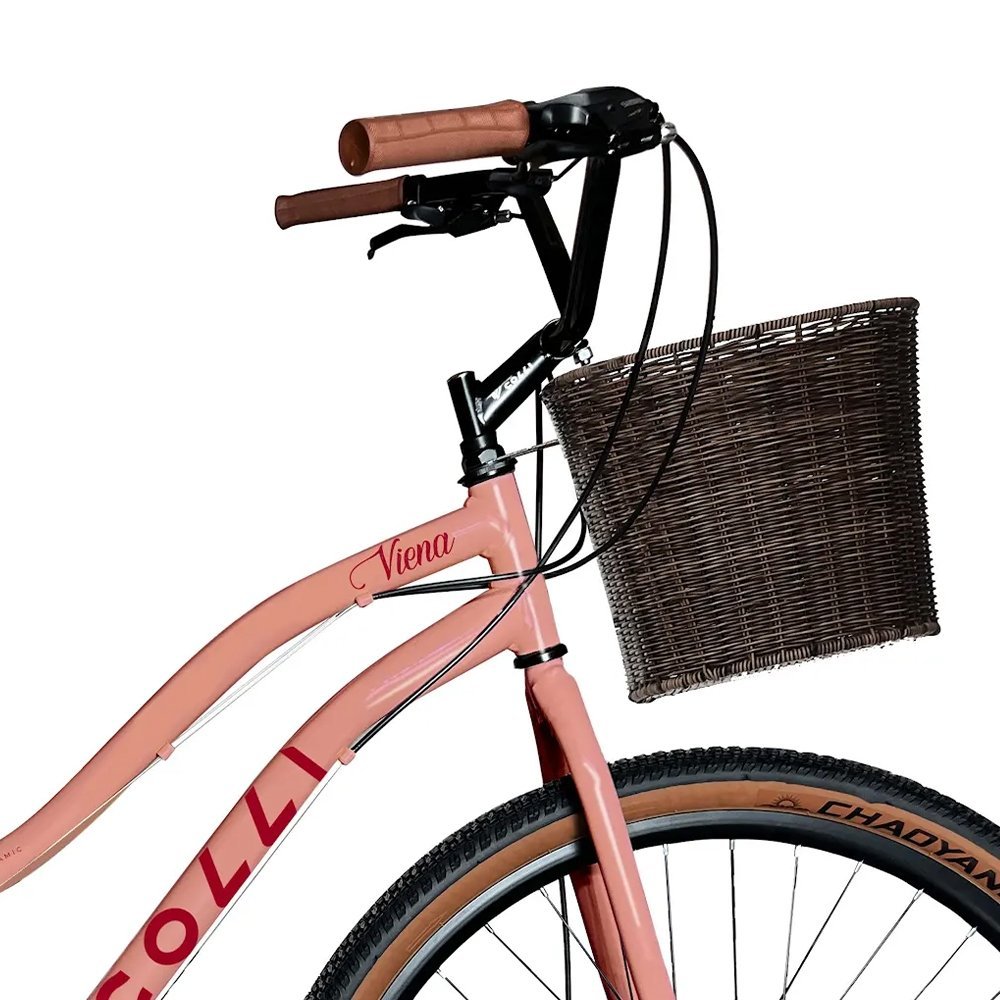 Bicicleta Colli Viena Aro 29 com Cesto - Freio a Disco, 21 Marchas, Rosa Blush