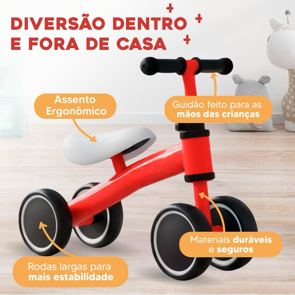 | Bicicleta de Equilíbrio Infantil Sem Pedal Andador 4 Rodas Bebê Cri... | R$ 94,90 | 50% | 4.9/5 | 1.3 mil |