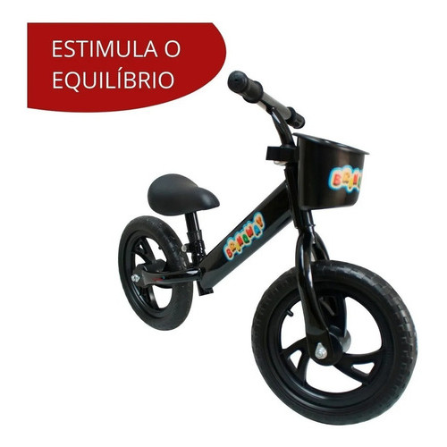 Bicicleta Equilíbrio Balance Bike Sem Pedal Aro 12 Importway Preta