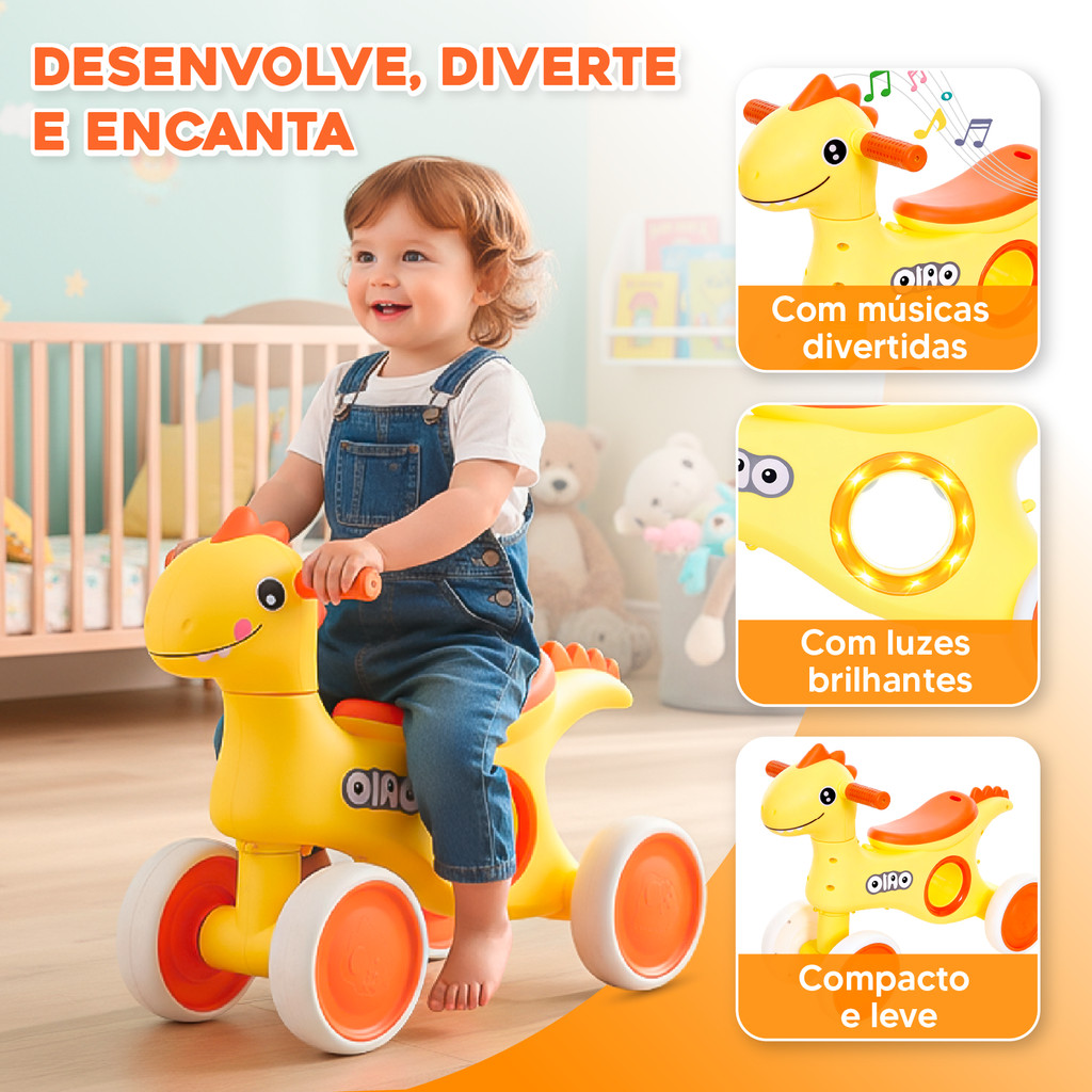 Bicicleta Equilíbrio Sem Pedal Infantil Dino Led Música Bebê