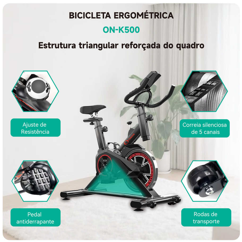 Bicicleta Ergométrica Fitness Com Resistência Ajustável 5kg Correia Silenciosa ON-K500
