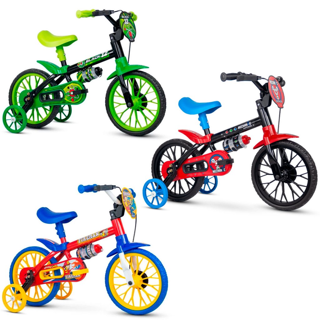 Bicicleta Infantil 3 a 5 anos Nathor Fireman Aro 12 com rodinhas
