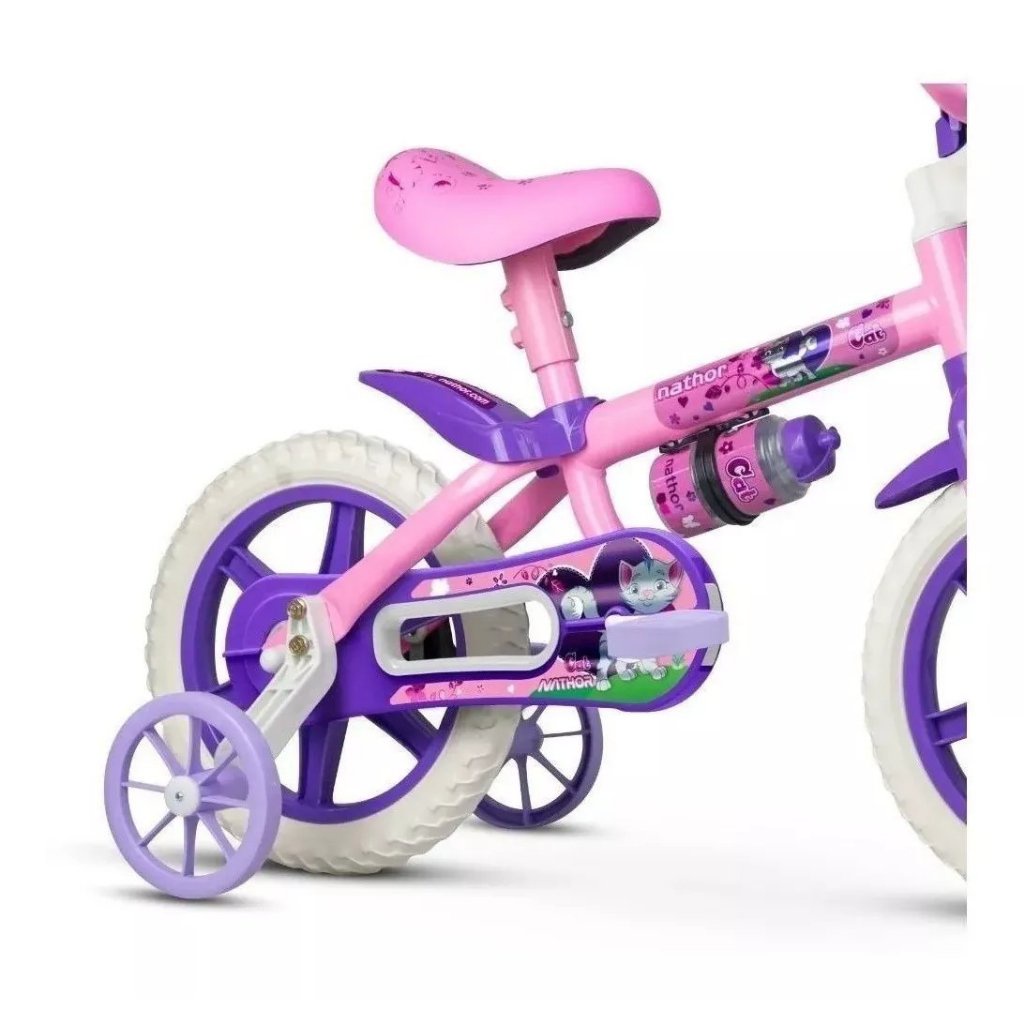 Bicicleta infantil Aro 12 de passeio Nathor Cat 2022 aro 12 12 freio tambor cor rosa/violeta com rodas de treinamento