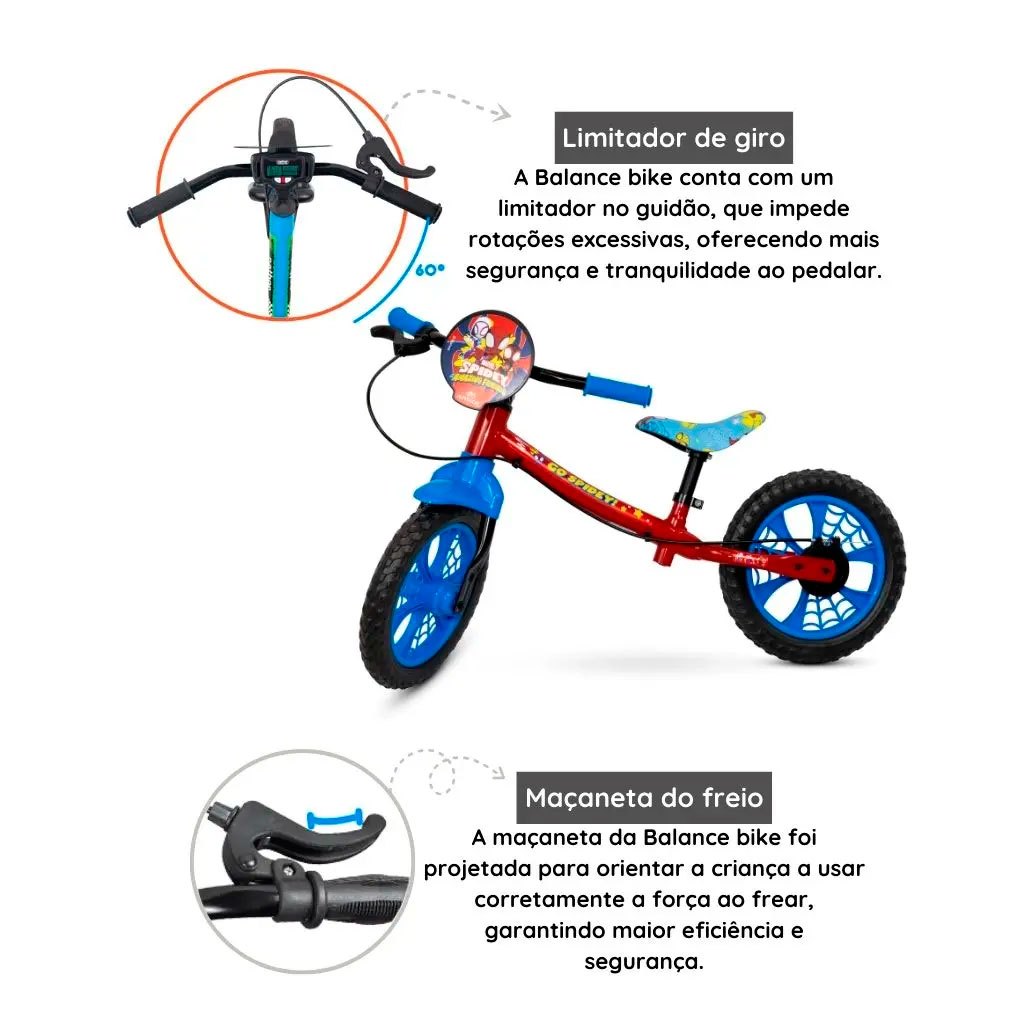 Bicicleta Infantil de Equilíbrio Balance Bike sem pedal Spider Man - Nathor