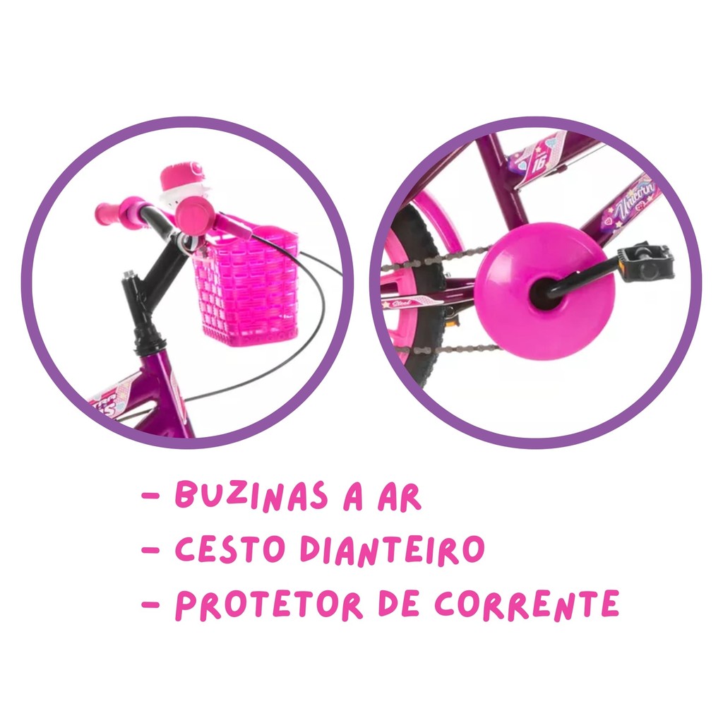 Resistentes e com visual moderno e confortável, as bicicletas da ultra bikes são as melhores opções de brinquedos. Possuem assento anatômico com altura ajustável, buzinas e ar, manoplas antiderrapante, pedais ergonômicos, para-lama dianteiro e traseiro, protetor de corrente, rodas de apoio lateral e freios V-BREAK. São brinquedos de uso individual, para crianças de 4 a 6 anos de idade com um peso máximo de 30kg. O quadro é fabricado em aço extremamente resistente e as peças plásticas injetadas em polipropileno com tecnologia DGP (Double Glass Polypropylene - brilho em dobro) que dura por muito mais tempo perante as ações do tempo. Características: - Marca: Pro Tork - Modelo: BMF16-01LIRS *Imagens meramente ilustrativas Especificações Técnicas: - Cor: Lilás e Rosa - Aro: 16 - Idade: 4 anos / 5 anos / 6 anos - Peso suportado: 30 kg - Assento: Anatômico com altura ajustável - Pedais: Ergonômicos - Freio: V-Break - Quadro: Aço-carbono - Guidão: Modelo baixo - Pedivela: 115 mm - Para-lamas: Wester - Cobre corrente: Wester - Buzina: Wester - Manoplas: Wester - Atura do quadro: 10 polegadas - Buzinas A Ar - Paralamas Dianteiro E Traseiro - Protetor De Corrente - Rodas De Apoio Lateral - Selo do inmetro: 01961-01A NM301/2002 Conteúdo da embalagem: - 1x Bicicleta Infantil Ultra Bikes Aro 16 Com Rodinhas Lilás e Rosa