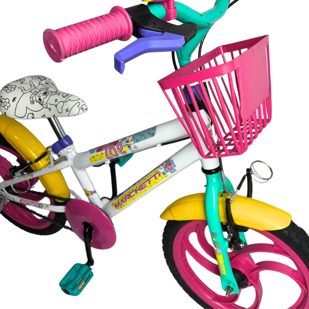Bicicleta Infantil Menina Menino Marchetti Aro 16 Banco Colorível Bobbie Goods C/ Canetas E Rodinhas