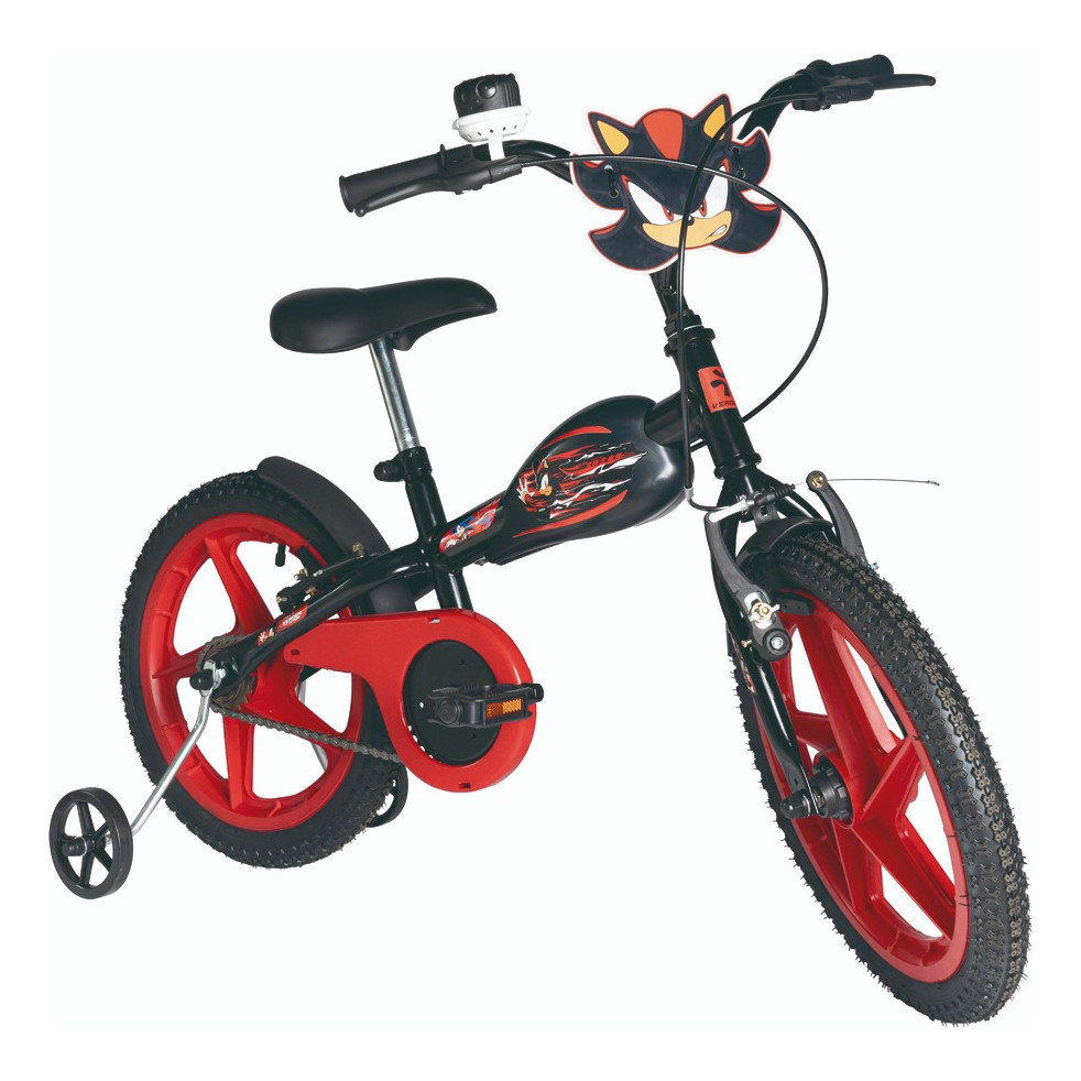 Bicicleta Infantil Para Meninos Shadow Sonic Aro 16 Com Rodinhas Vermelho Com Preto Verden