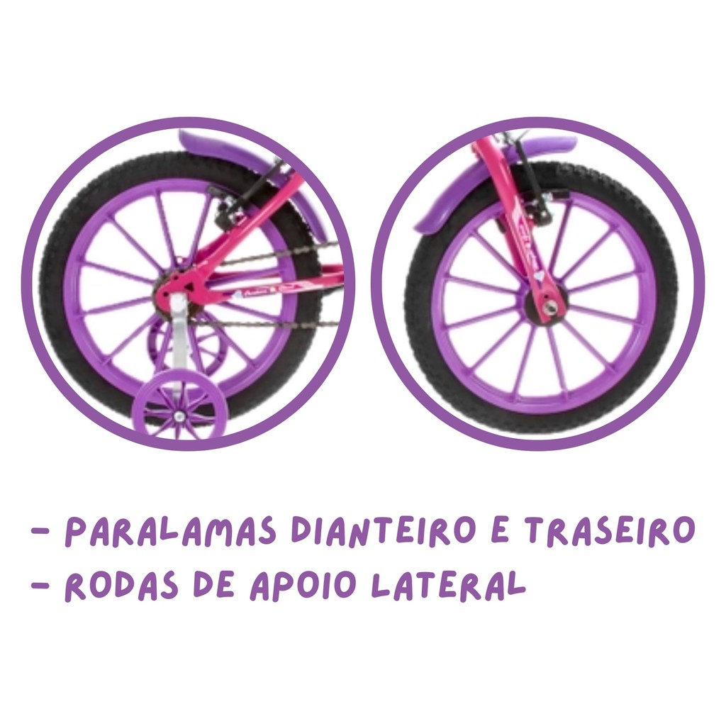 Resistentes e com visual moderno e confortável, as bicicletas da ultra bikes são as melhores opções de brinquedos. Possuem assento anatômico com altura ajustável, buzinas e ar, manoplas antiderrapante, pedais ergonômicos, para-lama dianteiro e traseiro, protetor de corrente, rodas de apoio lateral e freios V-BREAK. São brinquedos de uso individual, para crianças de 4 a 6 anos de idade com um peso máximo de 30kg. O quadro é fabricado em aço extremamente resistente e as peças plásticas injetadas em polipropileno com tecnologia DGP (Double Glass Polypropylene - brilho em dobro) que dura por muito mais tempo perante as ações do tempo. Características: - Marca: Pro Tork - Modelo: BMF16-01RSLI *Imagens meramente ilustrativas Especificações Técnicas: - Cor: Rosa e Lilás - Aro: 16 - Idade: 4 anos / 5 anos / 6 anos - Peso suportado: 30 kg - Assento: Anatômico com altura ajustável - Pedais: Ergonômicos - Freio: V-Break - Quadro: Aço-carbono - Guidão: Modelo baixo - Pedivela: 115 mm - Para-lamas: Wester - Cobre corrente: Wester - Buzina: Wester - Manoplas: Wester - Atura do quadro: 10 polegadas - Buzinas A Ar - Paralamas Dianteiro E Traseiro - Protetor De Corrente - Rodas De Apoio Lateral - Selo do inmetro: 01961-01A NM301/2002 Conteúdo da embalagem: - 1x Bicicleta Infantil Ultra Bikes Aro 16 Com Rodinhas Rosa E Lilás