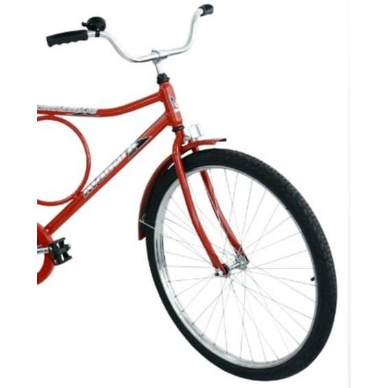 Confira! 🚲 Linha masculina ótima para uso transporte, apropriada principalmente nas zonas rurais conta com um Quadro de altíssima resistência e robustez; Pneus balão - comodidade e maciez; Sistema de freio seguro: Freios contra-pedal (cubo com mesmo sistema da velosteel); Bagageiro largo e reforçado próprio para cargas. Especificações Técnicas: - Quadro (supertubo) e garfo em aço carbono - Guidão em aço cromado, regulável - Pedivela em aço cromado, monobloco - Freio e aros: Sistema Contra Pedal - aros 26 em alumínio polido com raio grosso - Pedais em polipropileno com refletores - Pneus (balão) pretos - Descanso lateral - Selim modelo conforto com molas - Cubo contra pedal mesmo sistema da velosteel - Cobre corrente de metal, envolvente, pintado na mesma cor da bicicleta e decorado - Paralamas (refletor traseiro) Dimensões do Produto: - Altura: 79,0 cm - Largura: 21,5 cm - Profundidade: 141,5 cm - Peso: 18 kg * Garantia do Fabricante: 3 Meses. *
