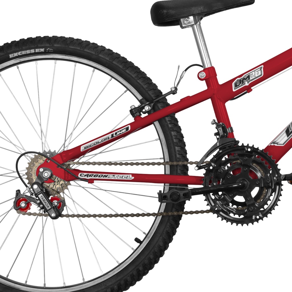 A Bicicleta Ultra Bikes Aro 26 Rebaixada Bicolor V-Brake é a companheira ideal para você que curte pedalar e se aventurar em seus passeios, a Bike lhe proporciona toda a qualidade e segurança da marca, além de possuir um design ergonômico para o seu conforto. Conta com pintura em cores alegres e vibrantes e adesivos estilosos em alto brilho. Especificações: - Tamanho: Aro 26; - Quadro: 11”; - Peso aproximado: 15 kg; - Modelo: Rebaixada Bicolor; - Quadro e Garfo fabricados em aço carbono; - Aros fabricados em alumínio; - Adesivos em alto brilho; - 18 Marchas; - Câmbio dianteiro: Yamada; - Câmbio traseiro: Yamada; - Tipo de trocador de marchas: Alavanca; - Freios V-Brake; - Raios: Aço 2.0x185mm; - Manopla em pvc shimano simples; - Garfo: Standard rígido; - Movimento central: 4,5 cm; - Altura do chão ao guidão: 100 cm; - Largura do guidão: 60 cm; - Comprimento total: 170 cm; - Comprimento entre rodas: 40 cm; - Altura do chão ao banco (altura mínima): 65 cm; - Caixa de direção: Standard; - Pedais: Plástico com refletor laranja metálico; - Selim: Cairu; - Canote do selim: Aço carbono; - Pedivela: Monobloco, 165 mm; - Pneus: 20x1,75; - Coroa dianteira: Tripla 28x38x48 dentes, aço carbono; - Peso máximo suportado (recomendado pelo fabricante): Até 95 kg; - Marca: Ultra Bikes; - Fabricante: Pro Tork. MONTAGEM: - Enviamos a bicicleta pré-montada, revisada e devidamente embalada, para melhor acomodar-se na embalagem de transporte, os seguintes itens são encaminhados desmontados na caixa: selim, pedais, guidão, roda dianteira e roda traseira. Lembrando que se faz necessário a regulagem de câmbios e freios após a montagem do produto, a instalação dessas peças é de total responsabilidade do cliente. Não nos responsabilizamos por defeitos causados pela montagem inadequada do produto. Recomendamos que seja feita por uma oficina especializada."