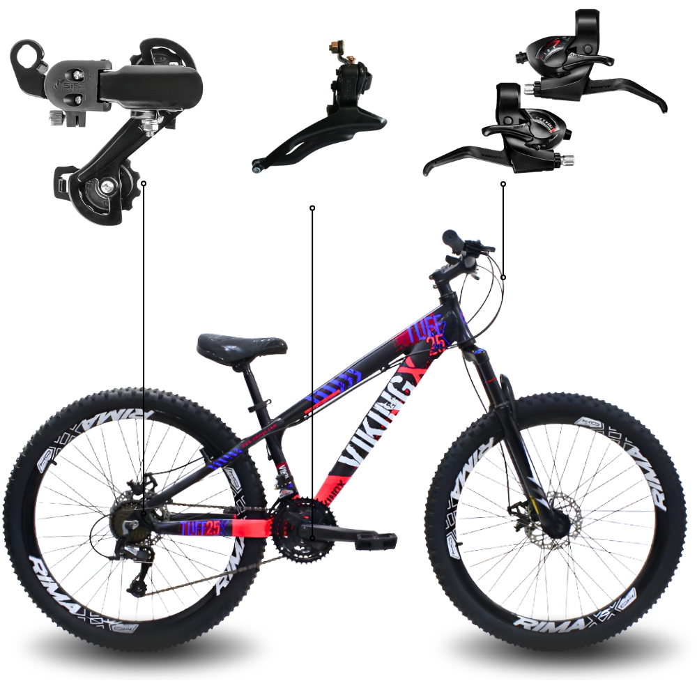 Se você procura uma bicicleta versátil e resistente para desafiar diversos tipos de terrenos, a Bicicleta Aro 26 Freeride Vikingx é a escolha ideal. Com um quadro em alumínio durável, freios a disco confiáveis e um design atraente, esta bicicleta oferece uma combinação perfeita de desempenho, estilo e aventura. Prepare-se para explorar novos horizontes e conquistar os terrenos mais desafiadores com a Vikingx ao seu lado. Quadro Vikingx 26 Alumínio. Cambio Dianteiro Index. Cambio Traseiro Index. Alavanca Ez-fire Index. Garfo suspensão 29. Canote Selim S/Carrinho Alumínio. Guidão em alumínio. Freio a Disco Mecanico. Pneu 26 Multi-terreno. Roda Livre 7v. Selim Mtb. Corrente fina. Pedal Frestylle Nylon. Pedivela Aço revestido em Nylon. Aro Parede Dupla em alumínio. Montagem: A bicicleta vai montada e revisada, por motivo de acomodação na embalagem, são retirados selim, pedais, guidão e roda dianteira. A montagem final é de responsabilidade do cliente, sugerimos a mesma seja feita por uma oficina especializada (a empresa não se responsabiliza pela montagem e regulagem final da mercadoria). Garantia: 1 ano para o quadro e 3 meses para os componentes (ambos contra defeitos de fabricação). A garantia não cobre defeitos por mau uso ou pela montagem inadequada do produto. Imagem meramente ilustrativa.