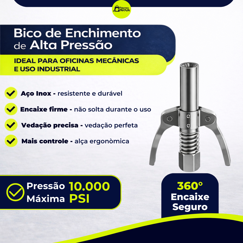 Bico Acoplador Engraxadeira Para Pistola De Graxa Alta Pressão Lubrificante Engate Rápido Com Trava