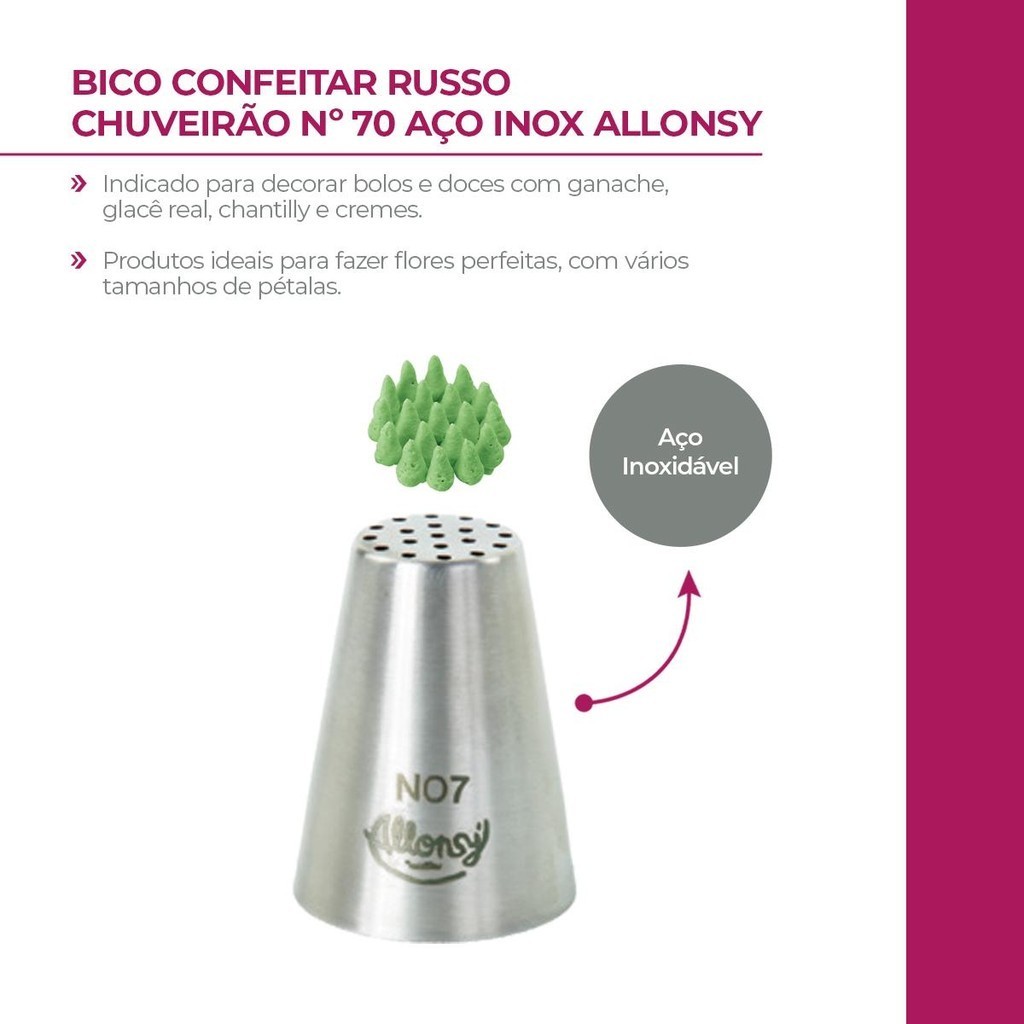 Bico Confeitar Russo Chuveirão Nº N70 Aço Inox Allonsy
