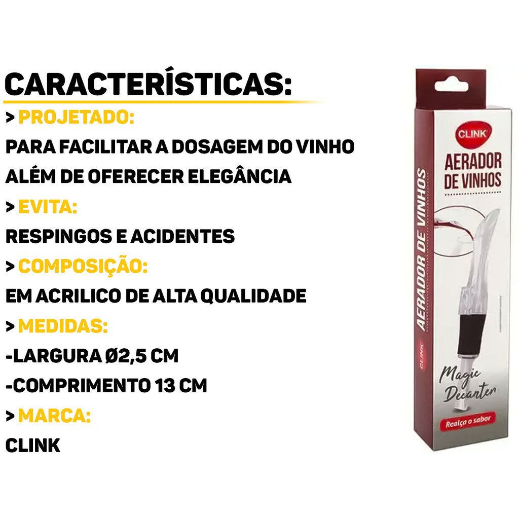Bico Dosador Em Acrílico Clink O Bico Dosador Em Acrílico é a solução ideal para quem deseja aproveitar todo o aroma e sabor do vinho. Fabricado em plástico ABS e acrílico, possui um design elegante, compacto e fácil de manusear. O Bico Dosador permite que você sirva o vinho com precisão, evitando derramamentos e desperdícios. Com ele, você irá desfrutar da verdadeira essência do vinho, liberando seus aromas e sabores. Características: > Design elegante; > Bico dosador acoplado para servir; > Compatível com todas as garrafas tradicionais; > Possui uma borracha em silicone, que permite travar sua garrafa. Especificações Técnicas: > Material: plástico ABS e acrílico; > Dimensões do produto (C x L x A): 16cm x 11cm x 7,5cm. - Marca: Clink - Garantia: 90 dias contra defeitos de fabricação Vantagens de comprar na Brester: - Produto a pronta entrega. - Produto novo, com garantia de fábrica. - Nota fiscal para Pessoa Física e Pessoa Jurídica.