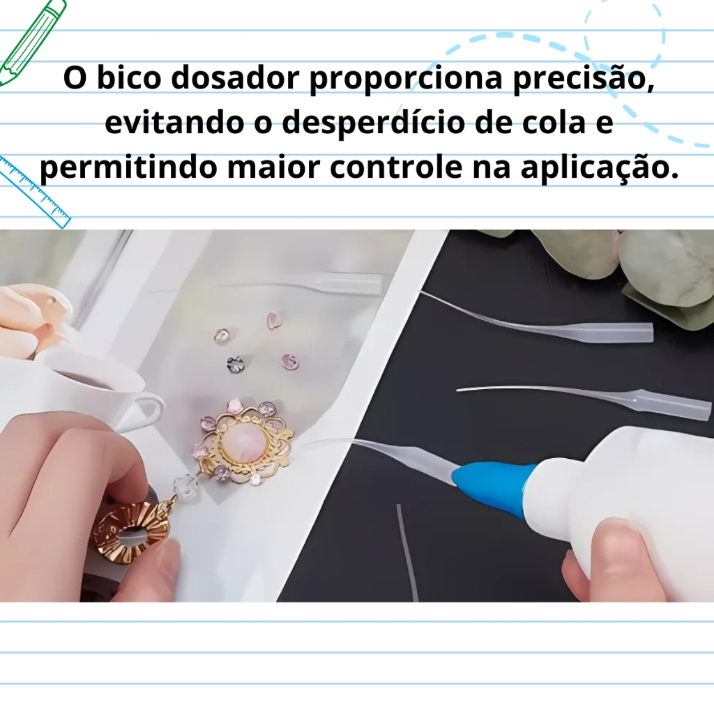 O Bico Dosador Conta Gotas para Cola Instantânea é um acessório essencial para quem trabalha com colas e adesivos, garantindo a aplicação exata da quantidade desejada, sem desperdícios. Com um design prático, o bico facilita o manuseio, permitindo que você aplique a cola de forma precisa e eficiente. O kit oferece um excelente custo-benefício para profissionais que buscam praticidade e economia no dia a dia. O Que Você Irá Receber? - 01 Kit com 10, 25, 50 ou até 100 Bicos Dosadores Conta Gotas para Cola Instantânea. (Selecione a quantidade desejada nas variações) BENEFÍCIOS - PRECISÃO NA APLICAÇÃO: Com o bico dosador, você aplica a quantidade exata de cola, evitando desperdícios. - MAIOR EFICIÊNCIA: Ideal para tarefas que exigem agilidade e precisão, economizando tempo e produto. - EXCELENTE CUSTO-BENEFÍCIO: Kit com várias unidades, perfeito para uso contínuo sem se preocupar com reposição constante. - VERSATILIDADE: Ideal para uso em diversos tipos de cola instantânea e adesivos, adequado para profissionais e hobbyistas. Características - Design que facilita o controle da quantidade de cola aplicada. - Material durável e de fácil manuseio. - Compatível com colas instantâneas e adesivos de diferentes tipos. Perguntas Frequentes 1. O Bico Dosador é compatível com todos os tipos de cola instantânea? Sim, o bico dosador é compatível com a maioria das colas instantâneas e adesivos líquidos. 2. Posso reutilizar os bicos dosadores? Sim, os bicos podem ser reutilizados várias vezes, tornando-se uma solução econômica. 3. Qual a vantagem de usar o bico dosador em relação ao uso direto da cola? O bico dosador proporciona precisão, evitando o desperdício de cola e permitindo maior controle na aplicação. 4. Como é o envio do produto? O produto é enviado com garantia de 3 meses e com total segurança. Palavras-chave: bico dosador; conta gotas para cola; dosador para cola instantânea; kit de bico dosador; bico para adesivo; precisão na aplicação de cola; bico de dosagem; bico dosador para adesivo; bico para cola líquida; acessório para cola; ferramentas de colagem; bico para cola instantânea; dosador de cola; bico para aplicar cola; kit de bicos dosadores