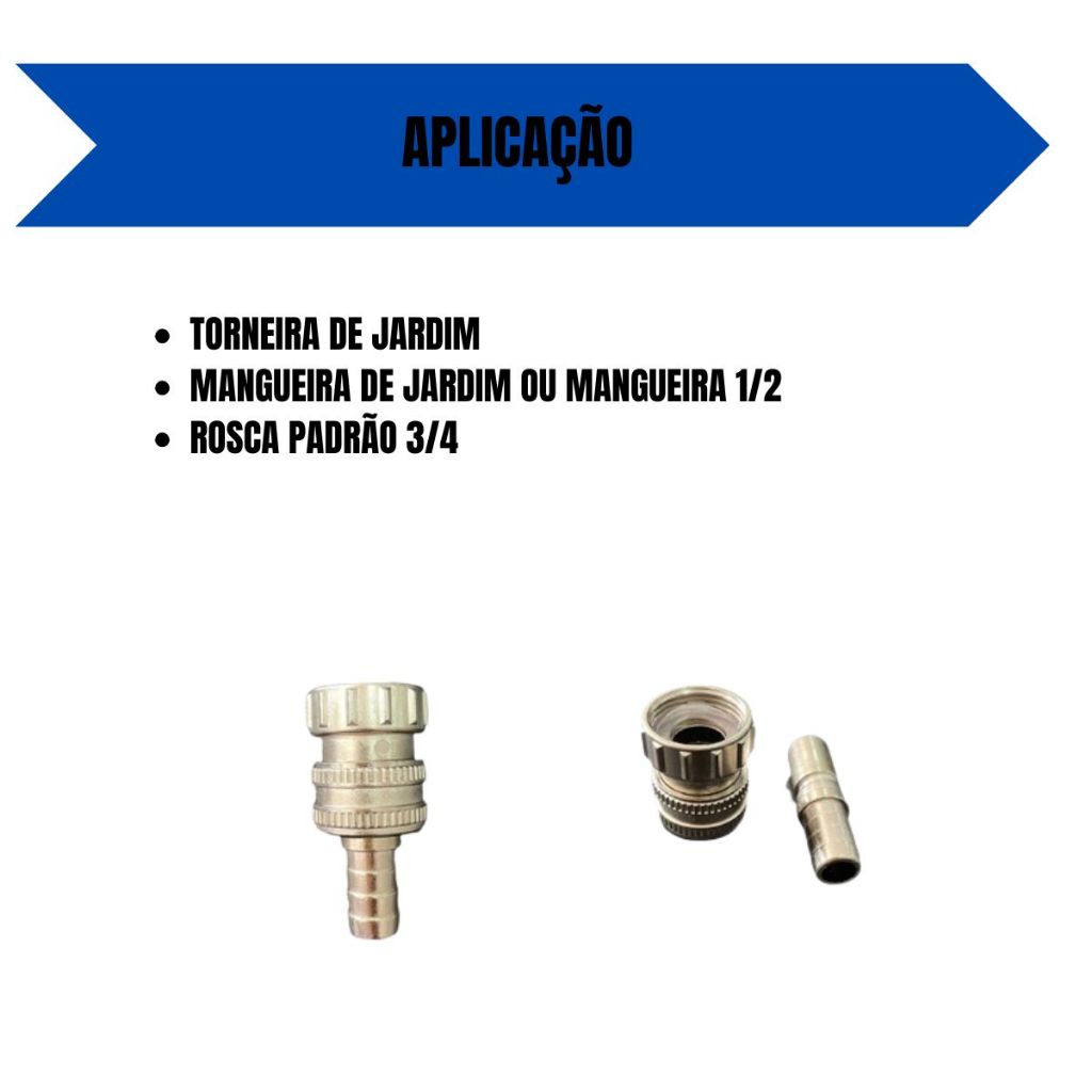 Bico Engate Rapido de Metal Niquelado para mangueira jardim - 3/4 x 1/2