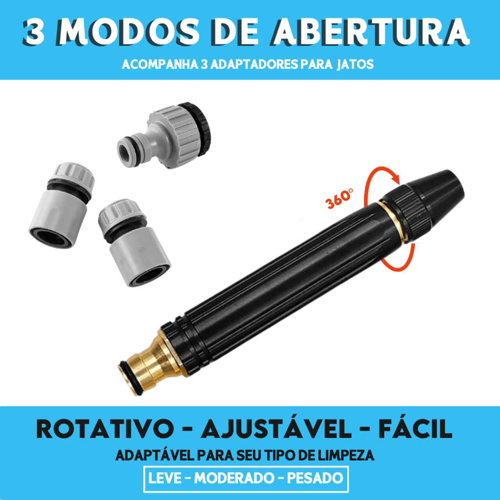 Seja Bem Vindo!! Avisos e informações: - Envio direto de São Paulo! - Produto pronto para entrega - Envio Rápido! 🚿 LIMPE TUDO SEM ESFORÇO, COM PRESSÃO PROFISSIONAL! Transforme sua rotina de limpeza com o Bico Esguicho de Alta Pressão com 3 modos de jato. Ideal para lavar carros, quintais, áreas externas, regar jardins e muito mais. ✔ 3 modos de jato: forte, leque e suave ✔ Aumenta a pressão da água mesmo em mangueiras comuns ✔ Encaixe simples com adaptadores – pronto para uso ✔ Economia de água e tempo na limpeza ✔ Corpo resistente e leve – fácil de manusear 🛒 Clique em comprar agora e turbine sua mangueira com mais potência e praticidade!