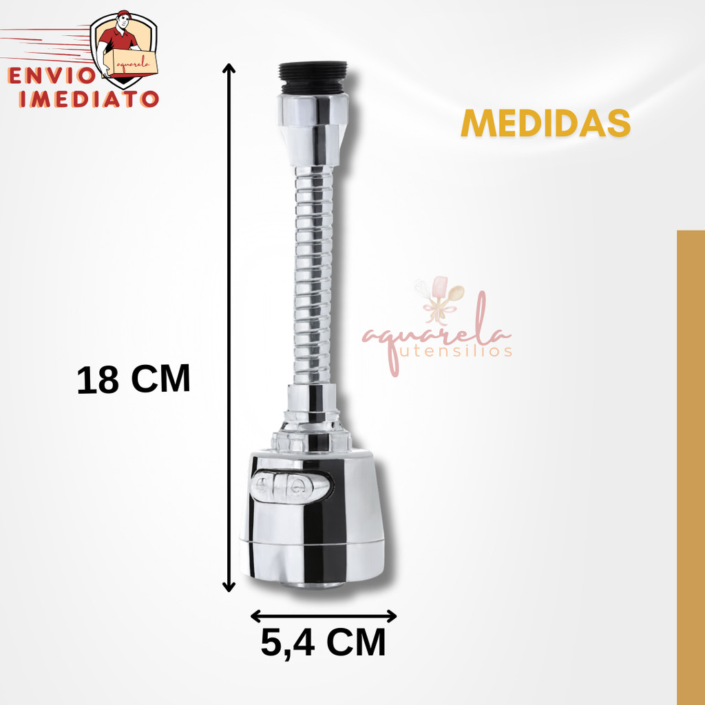 Extensor Torneira Bico Bica Chuveirinho Adaptador C/ 3 Jatos ESCOLHA A QUANTIDADE NA VARIAÇÃO DO ANÚNCIO 01 unidade ou kit com 02 unidades Informações do Extensor: Material: ABS Cromado Características: 1. O extensor de torneira é feito ABS cromado, que é antiferrugem. Também pode ser usado por muito tempo em um ambiente úmido como a cozinha. 2. As superfícies da torneira, bocal e mangueira foram galvanizadas para evitar que o óleo grude e para facilitar a limpeza e manutenção diária. 3. Nossa extensão de torneira é longa o suficiente para girar 360 graus, o que é conveniente para limpeza de pia e limpeza de frutas e vegetais para evitar respingos de água. 4. Nosso dispositivo de economia de água da torneira possui três modos que podem ser ajustados. Você pode alternar diferentes modos de saída de água de acordo com suas necessidades, o que não é apenas conveniente, mas também economiza água. 5. Esta extensão de torneira tem um tamanho padrão e universal que é adequado para a maioria das torneiras.