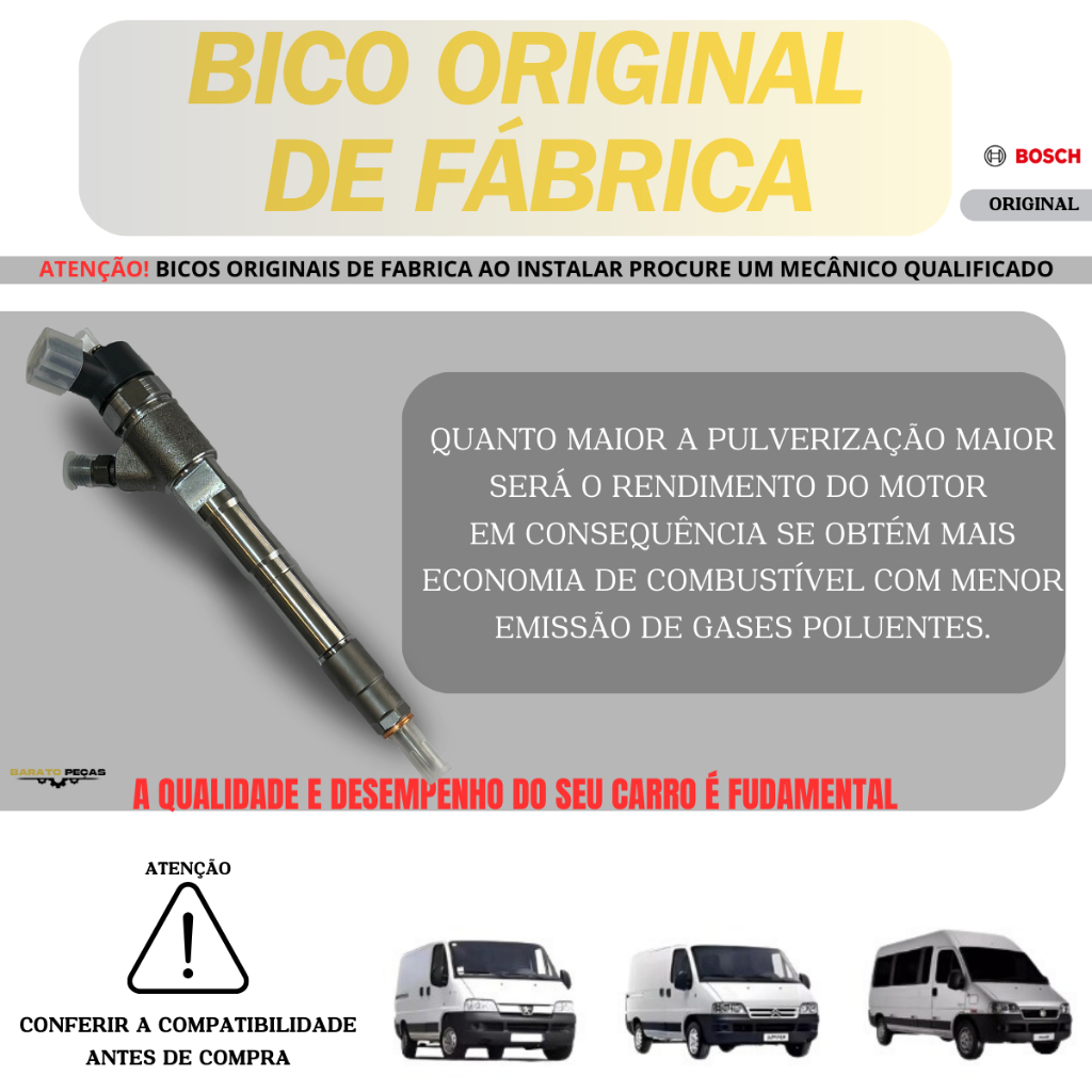 BICO INJETOR EURO 5 FIAT DUCATO PEUGEOT BOXER CITROEN JUMPER ORIGINAL BOSCH!!! - PRODUTO A PRONTA ENTREGA, ENVIAMOS EM ATÉ 12 HORAS ÚTEIS! Olá Cliente, seja Bem Vindo(a) a MIKE SHOP!! ACABE JÁ com falhação de cilindro, cheiro de combustível no interior do veículo, Alto consumo de combustível e Perda de desempenho. Os bicos injetores são componentes de extrema precisão, responsáveis por pulverizar finamente o combustível na câmara de combustão do motor. Quanto melhor for a pulverização, maior será o rendimento do motor. Sendo assim, gastará menos combustível e sem falhar, é claro. CÓDIGOS DA PEÇA: 5801594342 / 5801483286 - EM CASO DE DUVIDAS NOS ENVIE O NUMERO DO CHASSIS PARA CONSULTA!!! APLICAÇÃO: • Fiat DUCATO 2.3 16V Diesel 2006 Em Diante • Peugeot BOXER 2.3 16V Diesel 2006 Em Diante • Citroen JUMPER 2.3 16V 2006 Diesel Em Diante DESCRIÇÃO: - Marca: Bosch (Original Fiat / Peugeot / Citroën) - Combustível: Diesel - Aplicação: Motor 2.3 16v (Euro 5) - Código Fiat: 5801594342 (5801483286) - Código Bosch: 0445110418 OUTROS CÓDIGOS: 0445110418 / 0445110520 / 0986435212 / 160909097280 / 504389548 PACOTE CONTÉM: 1X BICO INJETOR MOTOR 2.3 16V PRODUTO DE ALTÍSSIMA QUALIDADE, PADRÃO MIKE SHOP!! ______________________________________________ - Após a entrega não esqueça de nos qualificar - Todas as nossas embalagens são seguras, garantimos 100% de SEGURANÇA durante a trajetória do produto até o local de entrega - Garantia de 3 meses contra defeitos de fabricação - Enviamos o produto dentro de até 12 horas úteis após a confirmação da compra - Tire suas dúvidas na seção de perguntas e respostas, nossa equipe estará disponível para responder suas dúvidas o mais rápido possível. Sua satisfação é a nossa meta! Boas compras!