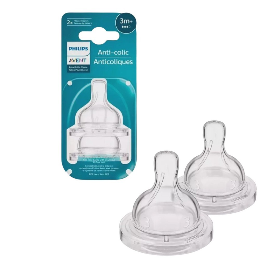 🍼 Bico Mamadeira Nº 3 Linha Anti-Colic 3m+ Philips Avent (SCY763/02) O Bico Anti-Colic Nº 3 Philips Avent foi desenvolvido para bebês a partir de 3 meses, oferecendo fluxo intermediário e ajudando a reduzir a ingestão de ar durante a alimentação. Produzido em silicone macio, proporciona conforto e uma pega natural. ⭐ Benefícios: Fluxo Nº 3 ideal para 3m+ • Sistema Anti-Colic que ajuda a reduzir gases • Silicone macio e resistente • Alimentação mais confortável 📦 Conteúdo: 2 bicos Anti-Colic Nº 3 👶 Indicação: Bebês a partir de 3 meses (3m+) 🏷️ Informações: Marca Philips Avent | Linha Anti-Colic | Fluxo Nº 3 | Código SCY763/02 | Livre de BPA | Produto 100% original