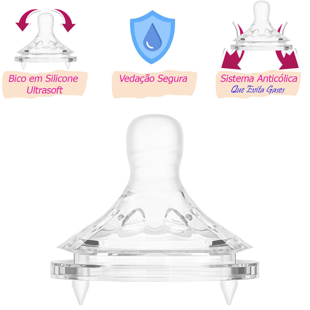 Bico para Mamadeira da Buba com 2 Unidades Refil Anticólica Anti Gases Silicone Ultrasoft Buba