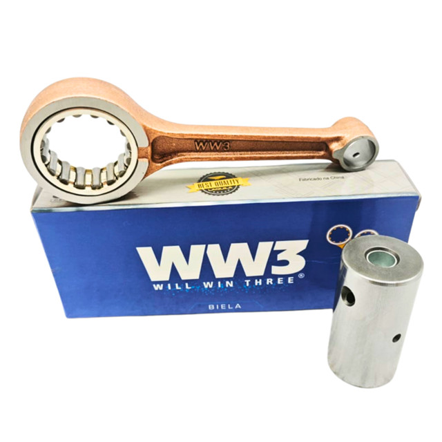 Biela WW3 Fabricada com aço de alta liga e passa por um rigoroso processo de cementação, garantindo que sua moto suporte o uso diário com a mesma performance de uma peça original. ----------------------------- Compatibilidade : - Honda CG 125 Titan: Anos 2002, 2003 e 2004. - Honda CG 125 Fan: Anos 2005, 2006, 2007 e 2008. - Honda NXR 125 Bros: Anos 2003, 2004 e 2005. Conteúdo da Embalagem: - 01 Haste de Biela - 01 Pino de Biela (Moente) - 01 Gaiola com Rolamento Diâmetro do Pino Superior (Pistão): 13 mm - Encaixe Perfeito: Medidas precisas que eliminam vibrações excessivas e ruídos no motor. - Produzida em aço forjado com tratamento térmico para resistir a altas temperaturas e atrito.