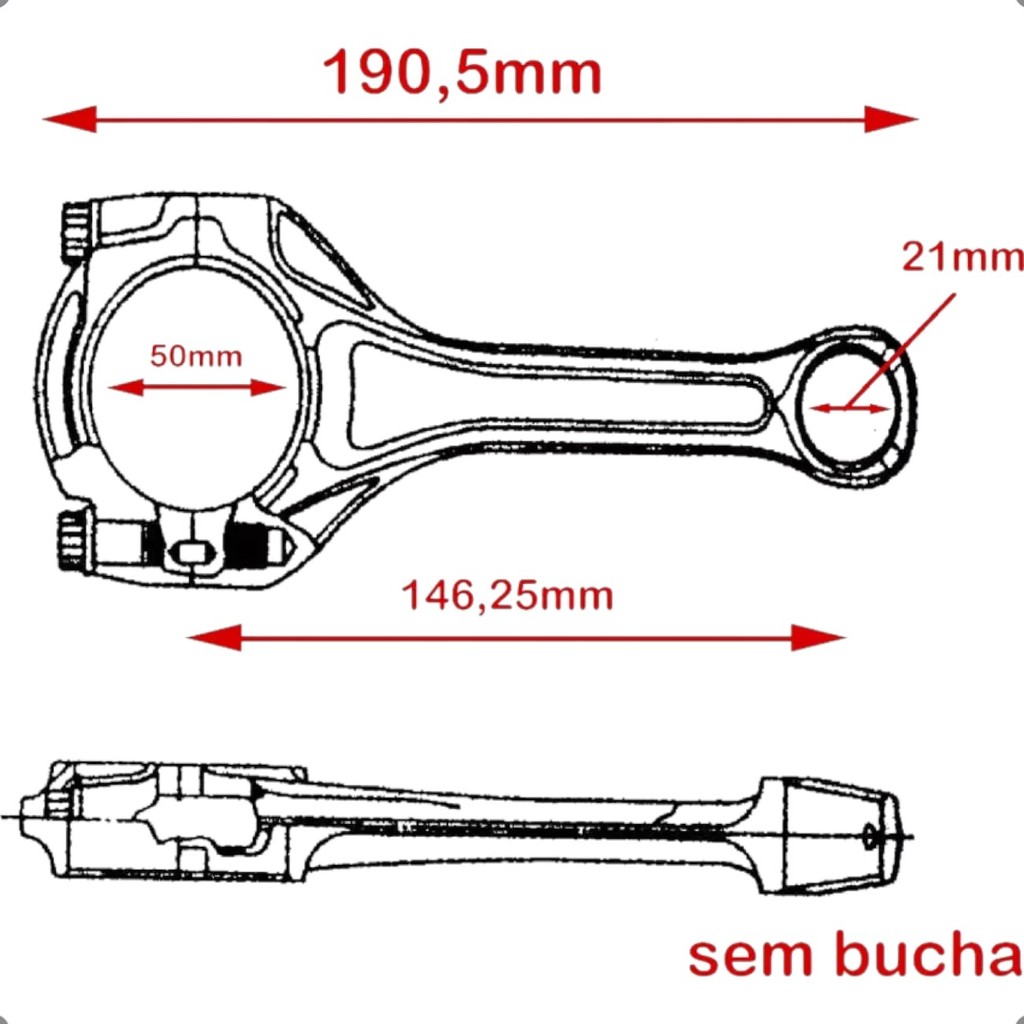 BIELA PARA MOTORES FORD 2.0 16V DURATEC MARCA FRONTIER VALOR UNITÁRIO Produto novo, pronto para instalação, com qualidade e desempenho garantidos pela marca Frontier. Códigos Originais (OEM): CP9Z6200B / DS7Z6200CX / CP9Z-6200-B / DS7Z-6200-CX ESPECIFICAÇÕES TÉCNICAS: Comprimento total: 190,50 mm Comprimento entre furos: 146,25 mm Diâmetro do pino: 21,0 mm Diâmetro do mancal: 50,0 mm Modelo: Biela reta sem bucha APLICAÇÃO - MOTORES FORD 2.0 16V DURATEC: ECOSPORT 2.0 16V - 2003 A 2021 FOCUS 2.0 16V - 2005 A 2012 NEW FOCUS 2.0 16V - 2013 A 2019 FUSION 2.0 HYBRID - 2014 A 2019 MONDEO 2.0 16V - 1995 A 2006 INFORMAÇÕES ADICIONAIS: - Produto novo de alta qualidade - Envio com nota fiscal e garantia de 3 meses - Valor referente a 1 unidade - Recomendamos confirmar a compatibilidade com seu motor antes da compra Em caso de dúvidas, entre em contato com nossa equipe informando a placa ou chassi do veículo. Estamos à disposição para ajudar!