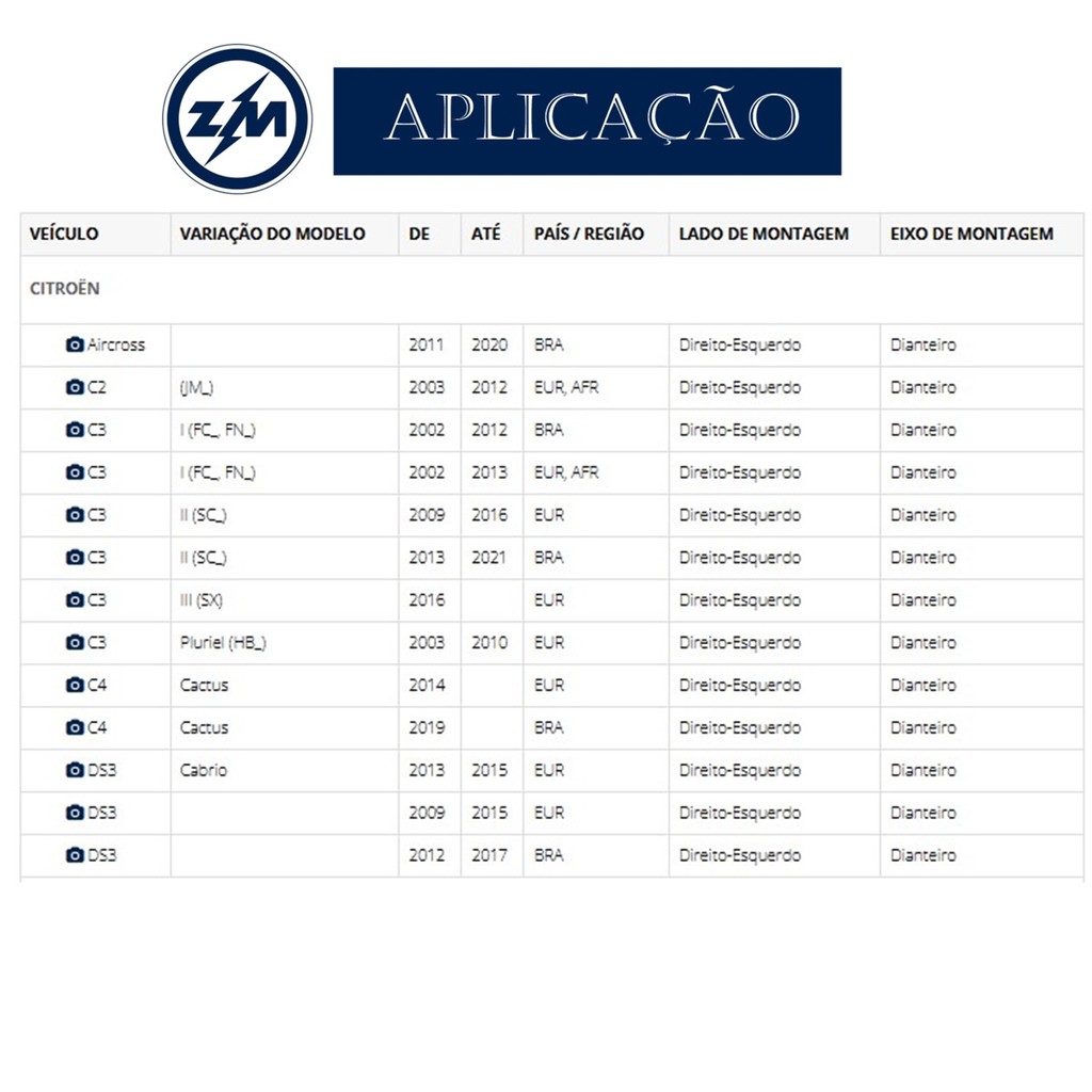 ATENÇÃO TIRE TODAS AS DÚVIDAS ANTES DE EFETUAR A COMPRA! Confirme o VEÍCULO / ANO / MODELO do carro nos campos de comentários antes de realizar a compra. Dessa forma evitamos o transtorno de PEÇAS INCORRETAS / DEVOLUÇÕES. ________________________________________________________________________ Este anúncio contém os seguintes produtos: 01 Bieleta Lado: Direito - Esquerdo Lado da Montagem: Direito-Esquerdo Fabricante: ZM Código: 370.110.54 Produtos novos, originais, com 90 dias de garantia total. _________________________________________________________________________ Este produto se aplica a esses veículos: Citroen AirCross(2011-2020) Citroen C3 (2002-2012) Citroen C3 II (2013-2021) Citroen C4 Cactus (2019) Citroen (2012-2017) Peugeot 2008 (2015-2024) Peugeot 206 (1999-2010) Peugeot 206 SW (2005-2008) Peugeot 207 Passion (2009-2015) Peugeot 207 SW (2009-2013) Peugeot 207 (2009-2015) Peugeot 208 (2013-2020) Peugeot Hoggar (2010-2014) _______________________________________________________________________ Especificações: ROSCA DO PINO M10-1,50 ROSCA DO PINO M10-1,50 COMPRIMENTO ENTRE CENTRO (mm) 335 TORQUE MÁXIMO DE APERTO DO PINO (N.m) 46 _______________________________________________________________________ REFERENCIAS: É novo, e acompanha nota fiscal Sim! Todos nossos produtos são novos acompanhados de nota fiscal. _______________________________________________________________________ NÃO NOS RESPONSABILIZAMOS POR DEFEITOS OCORRIDOS POR MÁ INSTALAÇÃO DO PRODUTO. TODO O PRODUTO DEVE SER INSTALADO POR UM PROFISSIONAL QUALIFICADO. A PARTIR DE 01/09/2024 NÃO FATURAREMOS PARA CNPJ, APENAS CPF FOTOS MERAMENTE ILUSTRATIVAS